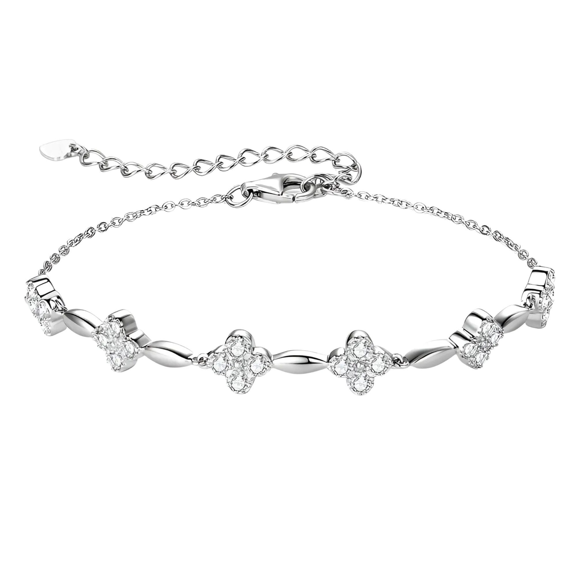Das Damenarmband ist aus 925er Sterlingsilber gefertigt, das den Glanz der Moissanite perfekt unterstreicht. Die Длина beträgt 16,5 cm + 5 cm Verlängerung (insgesamt 21,5 cm), wodurch es sich individuell anpassen lässt und auf fast jedes Handgelenk passt.