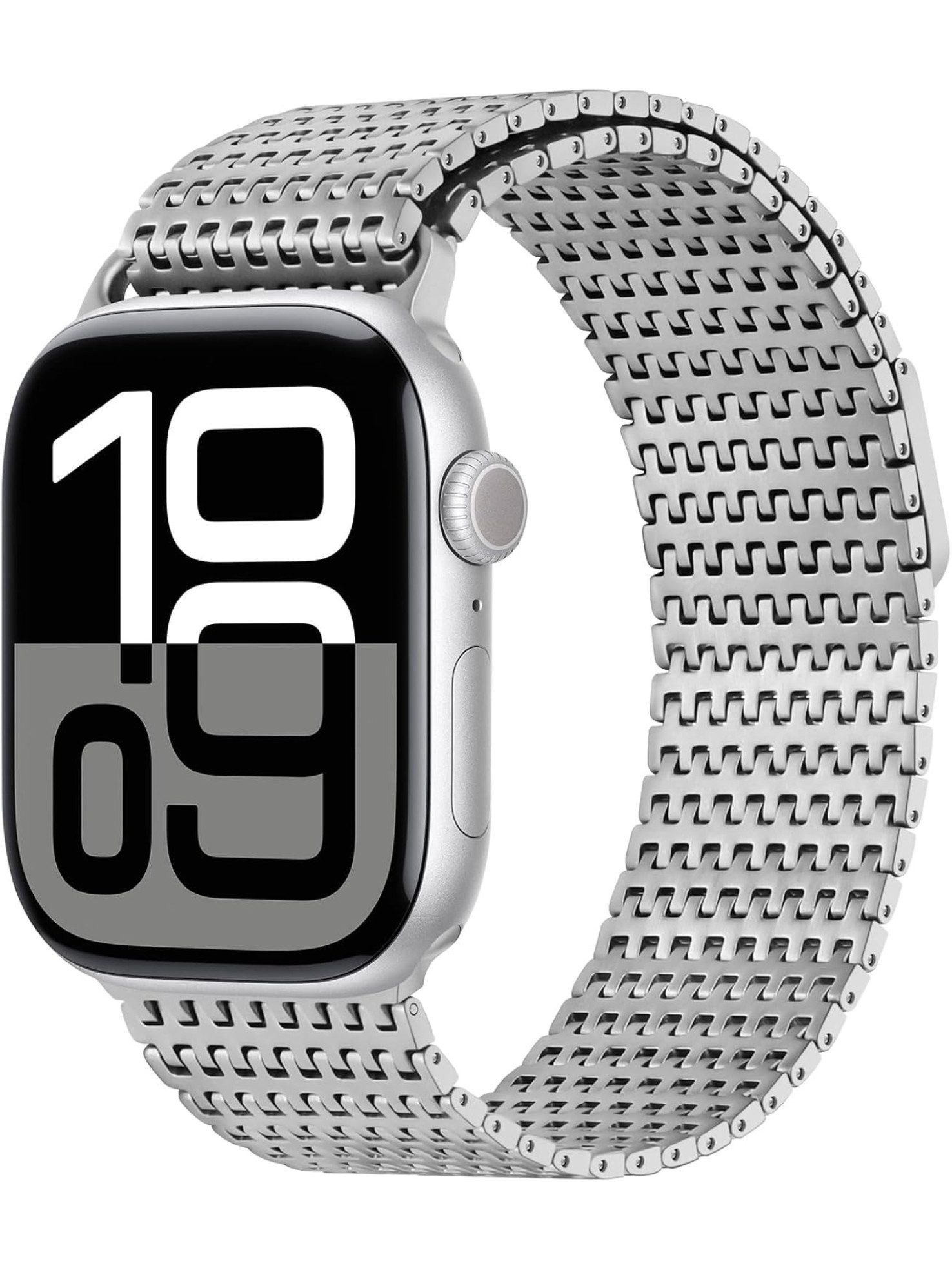Milanaise Armband kompatibel mit Apple Watch Ultra 2, Ultra sowie Series 9/8/7/6/SE/5/4/3/2/1 in den Größen 49 mm, 46 mm, 45 mm, 44 mm, 42 mm, 41 mm, 40 mm und 38 mm. Aus hochwertigem 316L-Edelstahl gefertigt für robuste, korrosionsbeständige Nutzung.