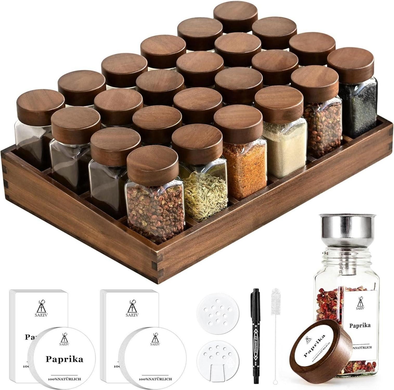 Beschreibung: Mit dem SAEIV Eleganten Akazienholz-Tablett-Gewürzständer und Gewürzregal erhältst du ein komplettes Set für die Aufbewahrung deiner Gewürze. Das Set beinhaltet ein Tablett, 24 120 ml würfelförmige Gewürzgläser und selbstklebende Gewürzetiketten für eine perfekte Organisation. Das Akazienholz ist wasserdicht, feuchtigkeitsbeständig, robust und langlebig. Es ist frei von Chemikalien und bietet eine einzigartige natürliche Textur. Dank seiner vielseitigen Platzierungsmöglichkeiten bringt es Eleganz in jede Küche oder Essbereich.