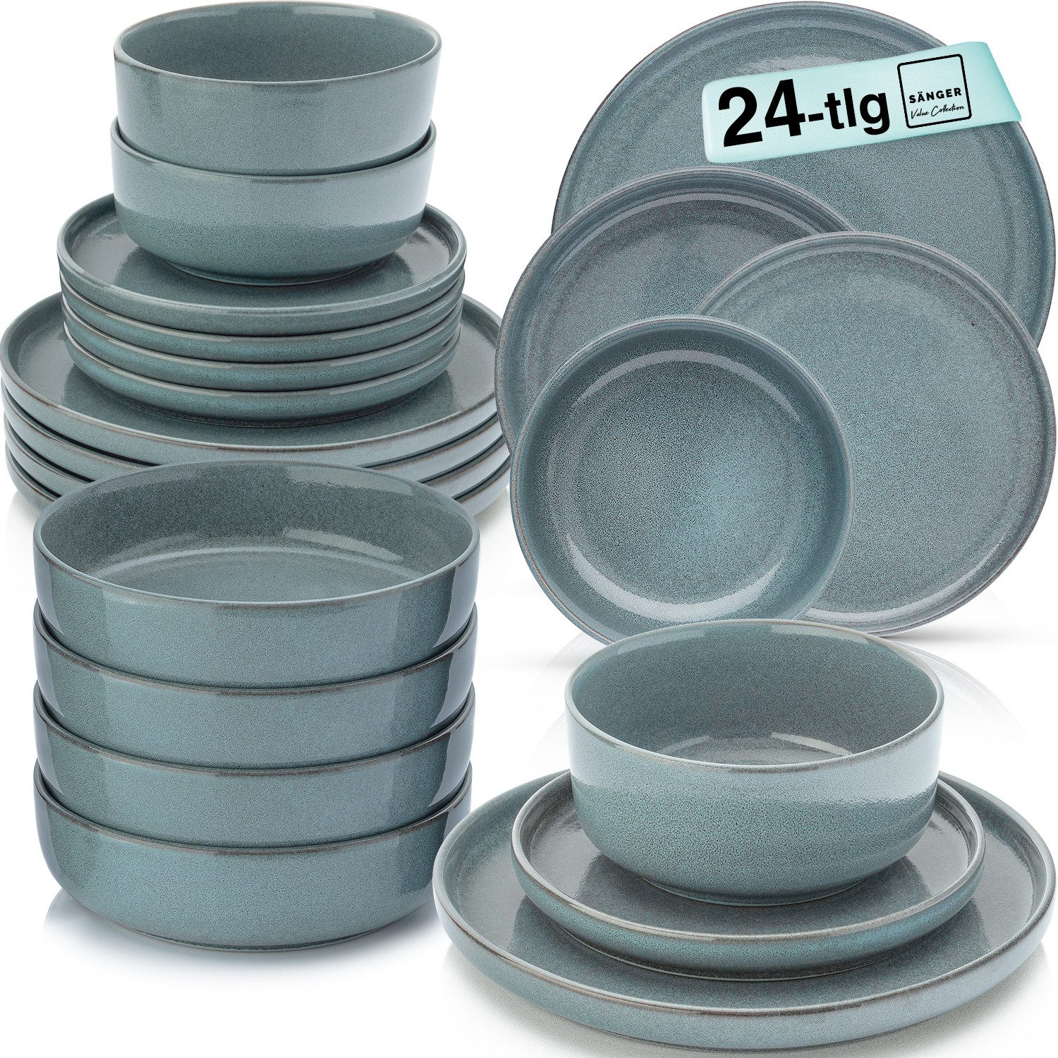 Die natürliche Textur und die handgefertigte Qualität des Steinguts verleihen diesem Set eine rustikale Eleganz, die jeden Tisch aufwertet. Ob für den täglichen Gebrauch oder besondere Anlässe, dieses Tafelservice vereint zeitloses Design mit moderner Funktionalität und ist ein unverzichtbares Element für jede Küche, das Ihnen lange Freude bereiten wird.