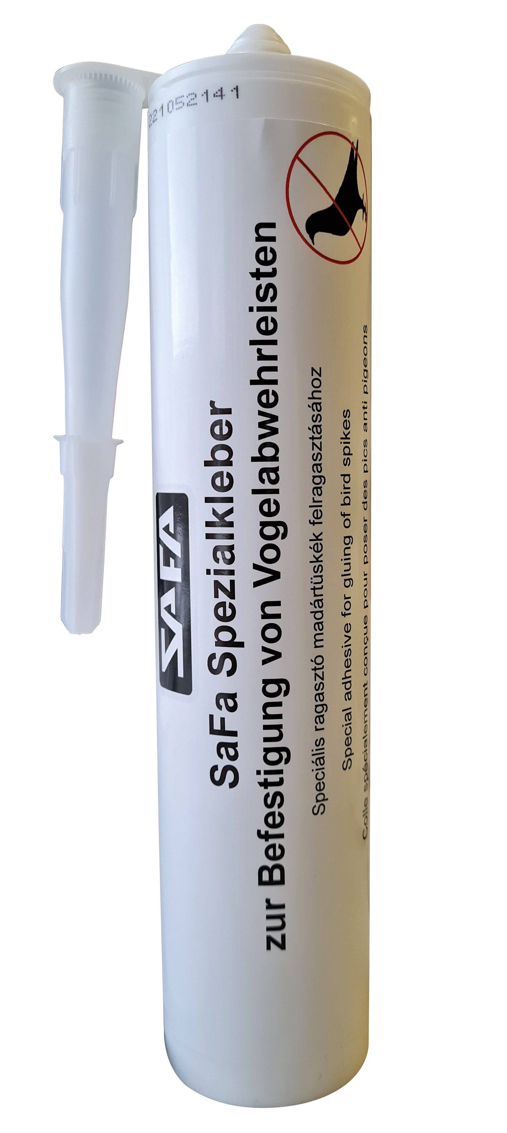 SPEZIALKLEBER FÜR VOGELABWEHRLEISTEN. Marke: SAFA, Артикул:: SK BI 01 Mengeneinheit: 1 Kartusche 310 ml, Gewicht 1 Kartusche: 0,40 kg, Farbe: transparent. ARTIKELBESCHREIBUNG: Der Spezialkleber SK BI 01 eignet sich hervorragend zum Befestigen von Taubenabwehrleisten aus Polycarbonat und Edelstahl auf verschiedenen Materialien wie Holz, Glas, Metall, Aluminium, Kupfer, Polycarbonat, PVC, Ziegel und Fliesen. Einsetzbar im Innen- und Außenbereich. Zuverlässig bei Wasserbelastung, hervorragende Witterungsbeständigkeit, Alterungsbeständigkeit und UV-Beständigkeit. Schnelle Aushärtung. 1 Kartusche ist ausreichend für 10 Laufmeter Vogelabwehrleisten. Der Spezialkleber SK BI01 sollte ausschließlich mit einer Druckpistole verwendet werden.