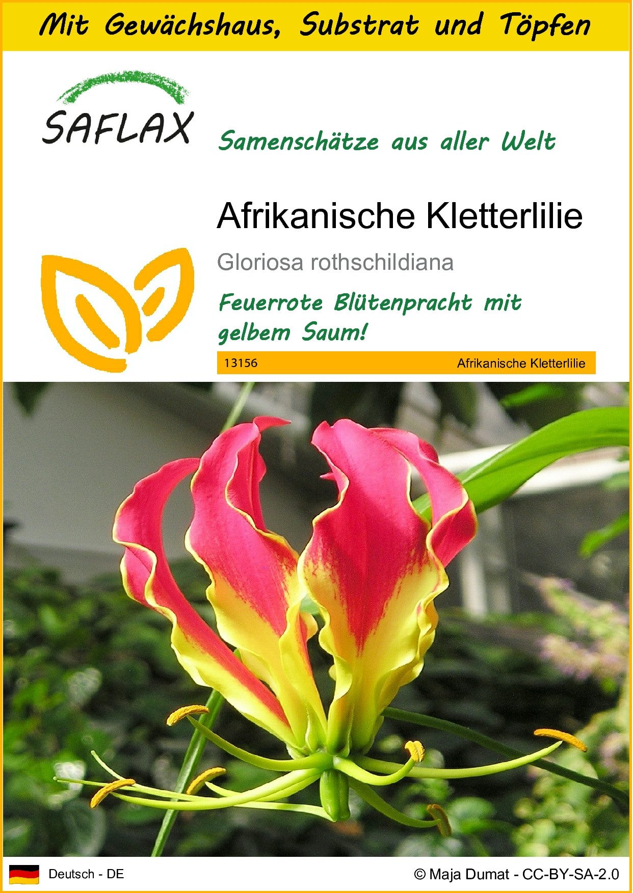 SAFLAX - Anzucht Set - Afrikanische Kletterlilie - Gloriosa rothschildiana - 15 Samen - Mit Mini-Gewächshaus, Anzuchtsubstrat und 2 Töpfen