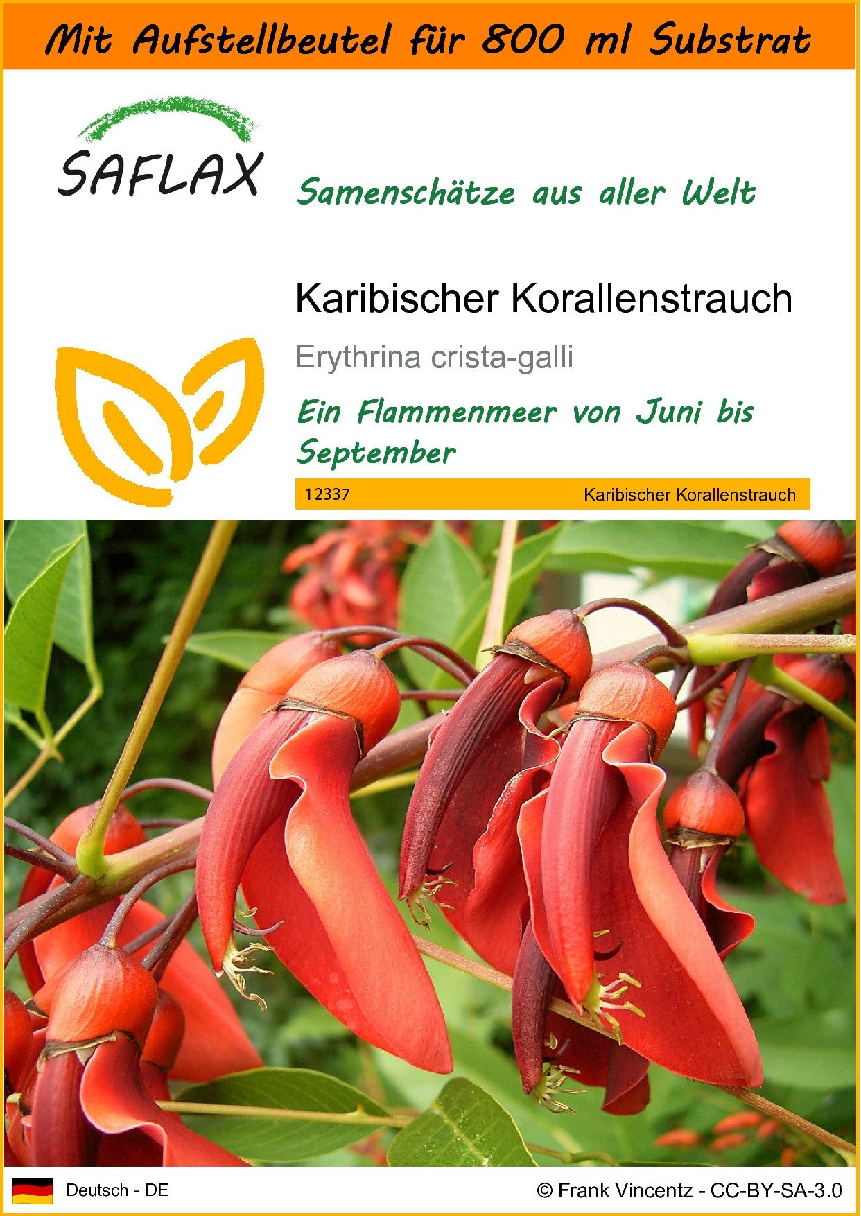 SAFLAX - Garden in the bag - Karibischer Korallenstrauch - Erythrina crista-galli - 6 Samen - Mit Anzuchtsubstrat im praktischen, selbst aufstellenden Beutel