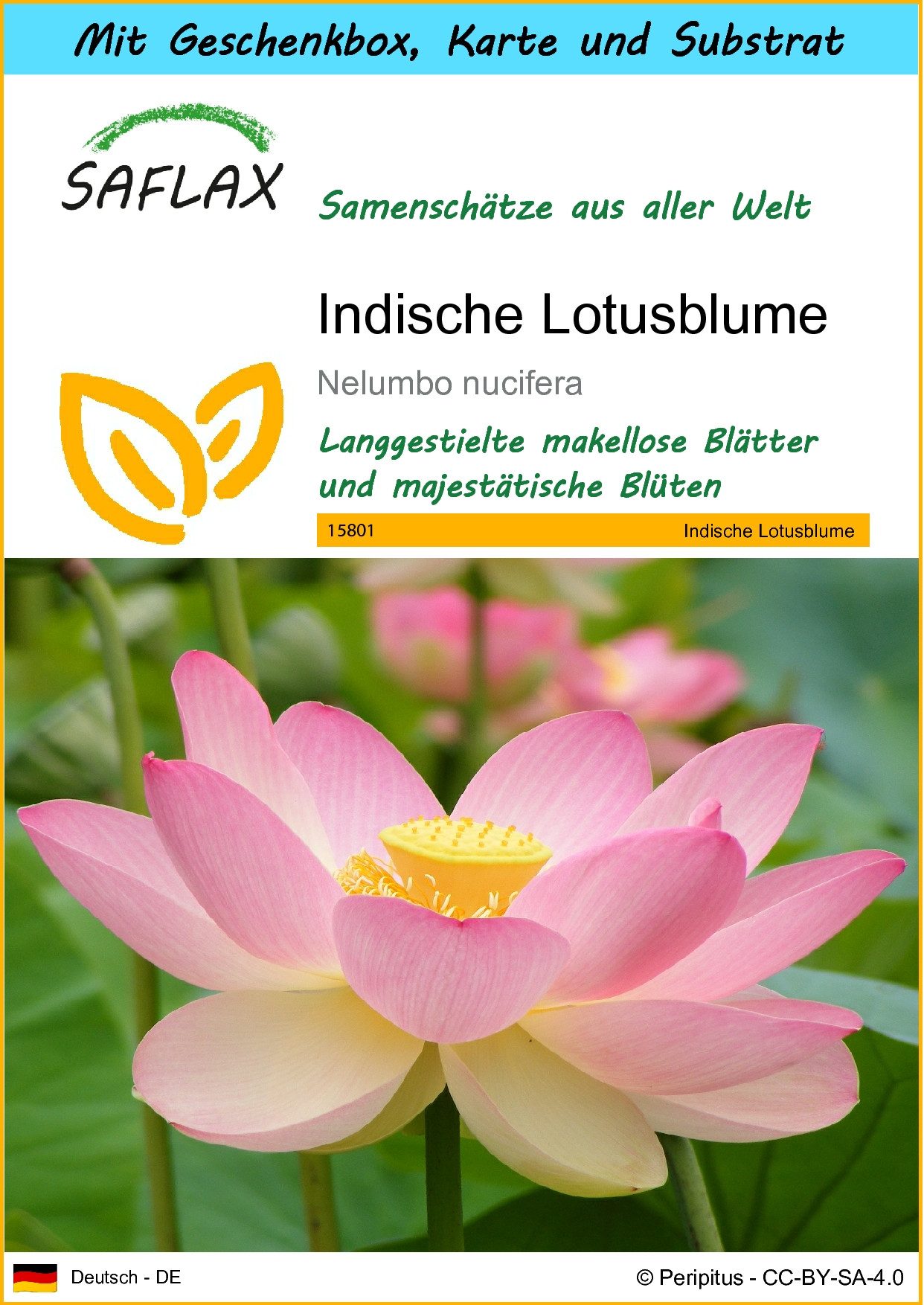 SAFLAX - Geschenk Set - Indische Lotusblume - Nelumbo nucifera - 8 Samen - Mit Geschenkbox, Versandaufkleber, Geschenkkarte und Anzuchtsubstrat