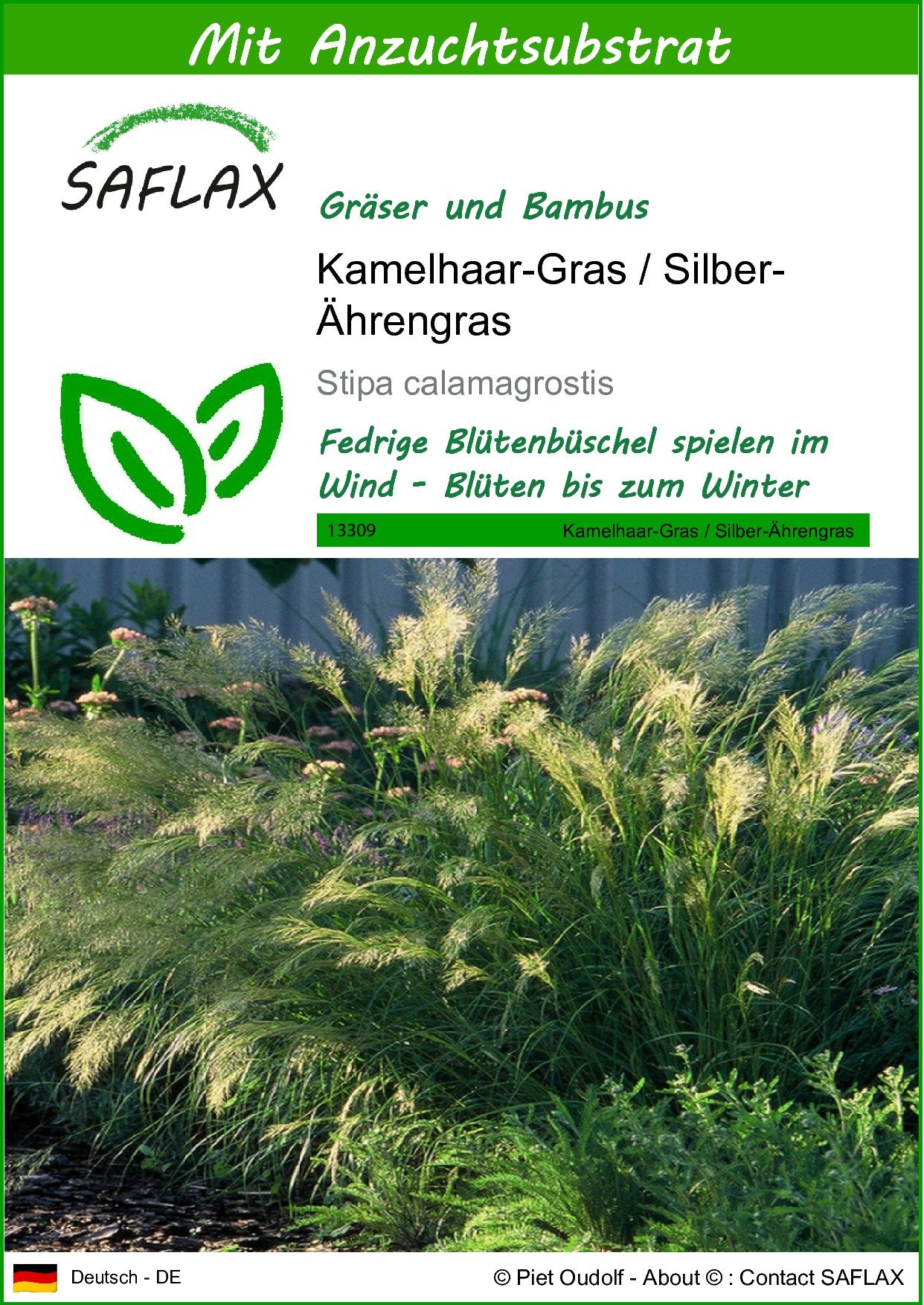 SAFLAX - Kamelhaar-Gras / Silber-Ährengras - Stipa calamagrostis - 50 Samen - Mit keimfreiem Anzuchtsubstrat