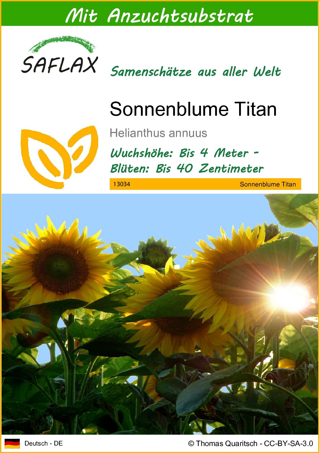 SAFLAX - Sonnenblume Titan - Helianthus annuus - 20 Samen - Mit keimfreiem Anzuchtsubstrat