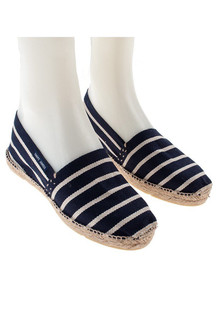 Authentischer Espandrille von Saint James, der zu den klassischen Modeelementen zählt und egal welchen Alters, den modisch lässigen Herren von heute stilvoll kleidet. Von besonders fachmännischer Verarbeitung und bester Materialqualität wird dieser Schuh in der Nähe der Baskenstadt Biarritz gefertigt. Er unterscheidet sich durch die sorgfältige Verarbeitung und die Langlebigkeit von der Massenware der Touristenhotspots.