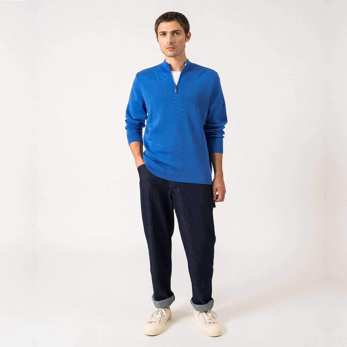 Der hochgeschlossene Pullover mit Reißverschluss passt sich komplikationsfrei in Ihre Garderobe. Am linken Ärmel befindet sich ein dezentes Saint James Logo.