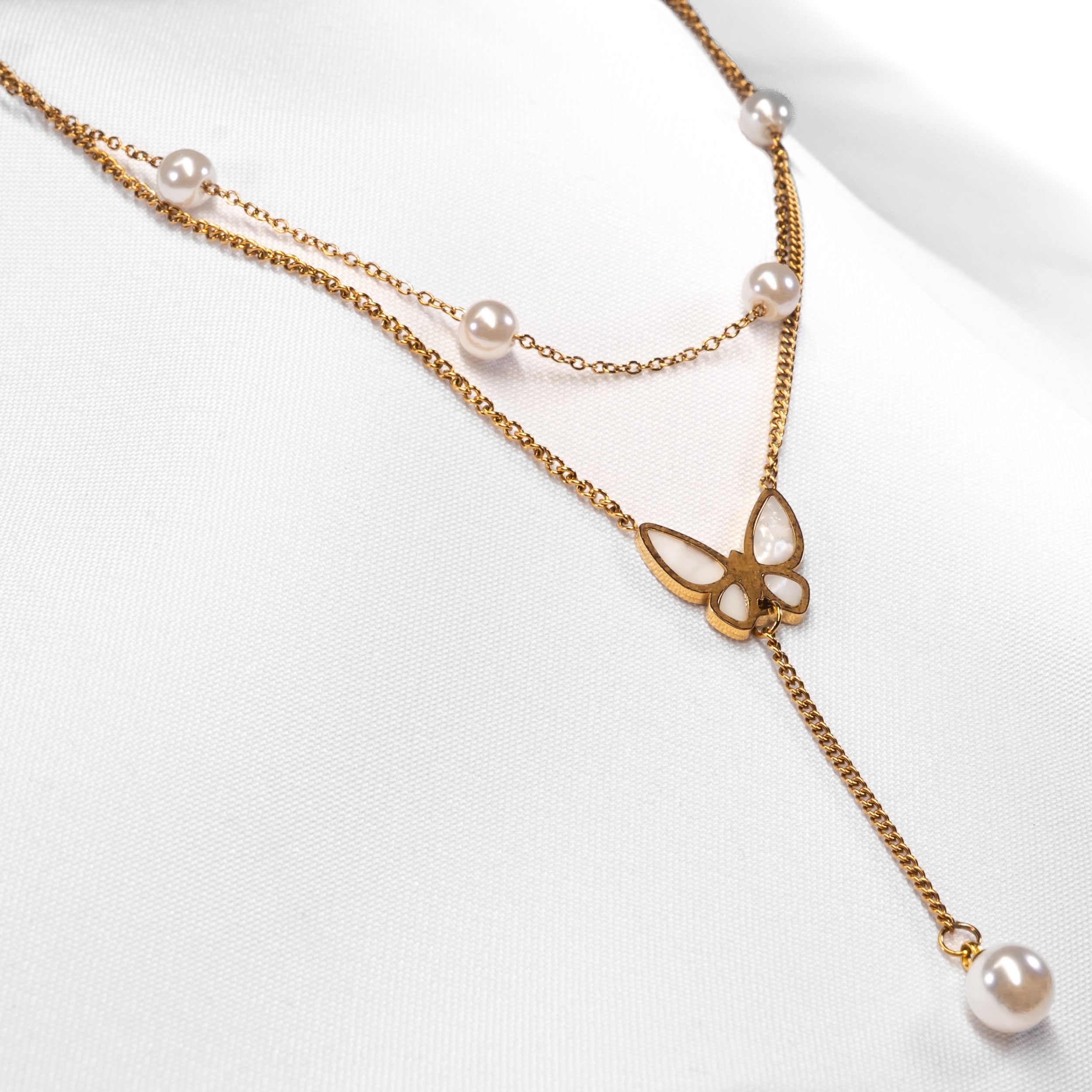 Ausführung | Schmetterling Perlen vergoldete Kette |