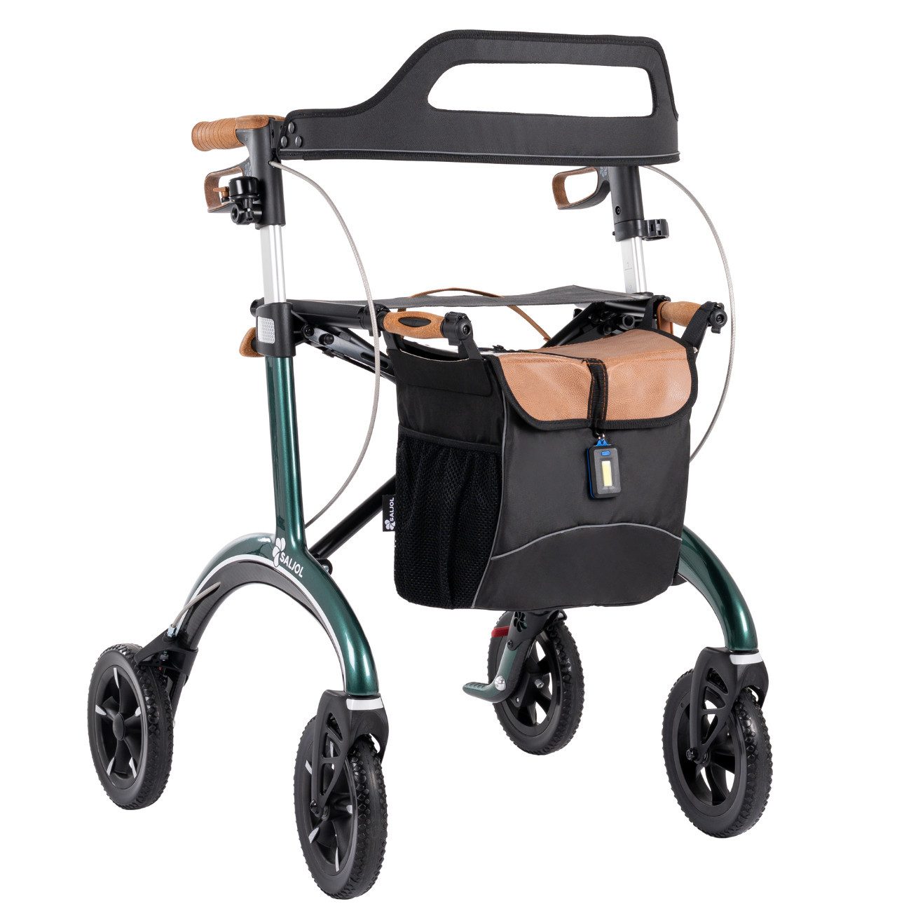 Der faltbare Saljol Carbon Rollator besticht durch sein elegantes Design und dem geringen Gewicht. Er ist kinderleicht bedienbar, kann mit seinem kleinen Packmaß mit einer Hand getragen und in ein PKW gelegt werden. Der Sicherungsbügel kann per Knopfdruck entriegelt und der Rollator einfach auseinandergefaltet werden.