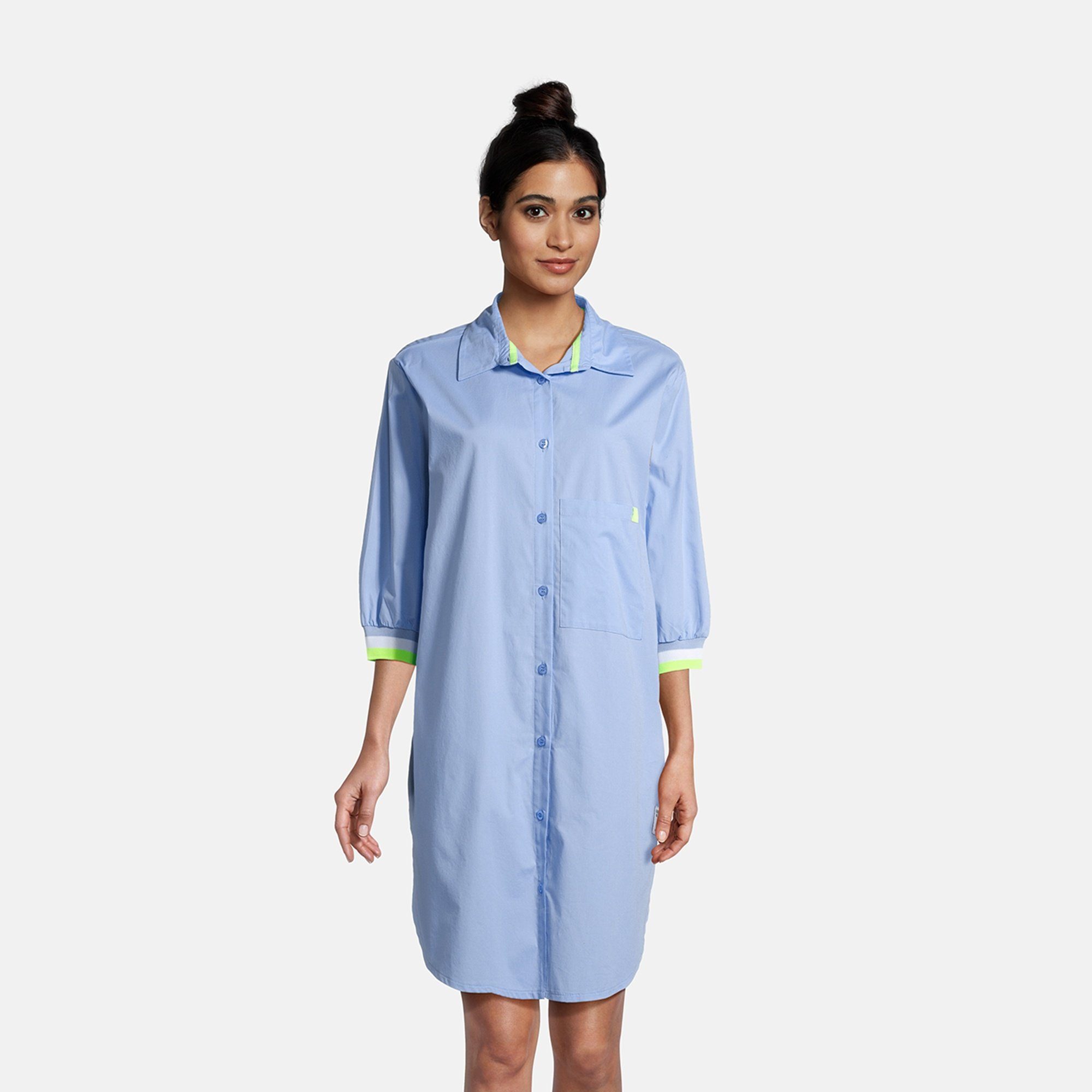 Knopfleiste und dreifarbigem Bündchen Neongelb/Offwhite/Iceblue.