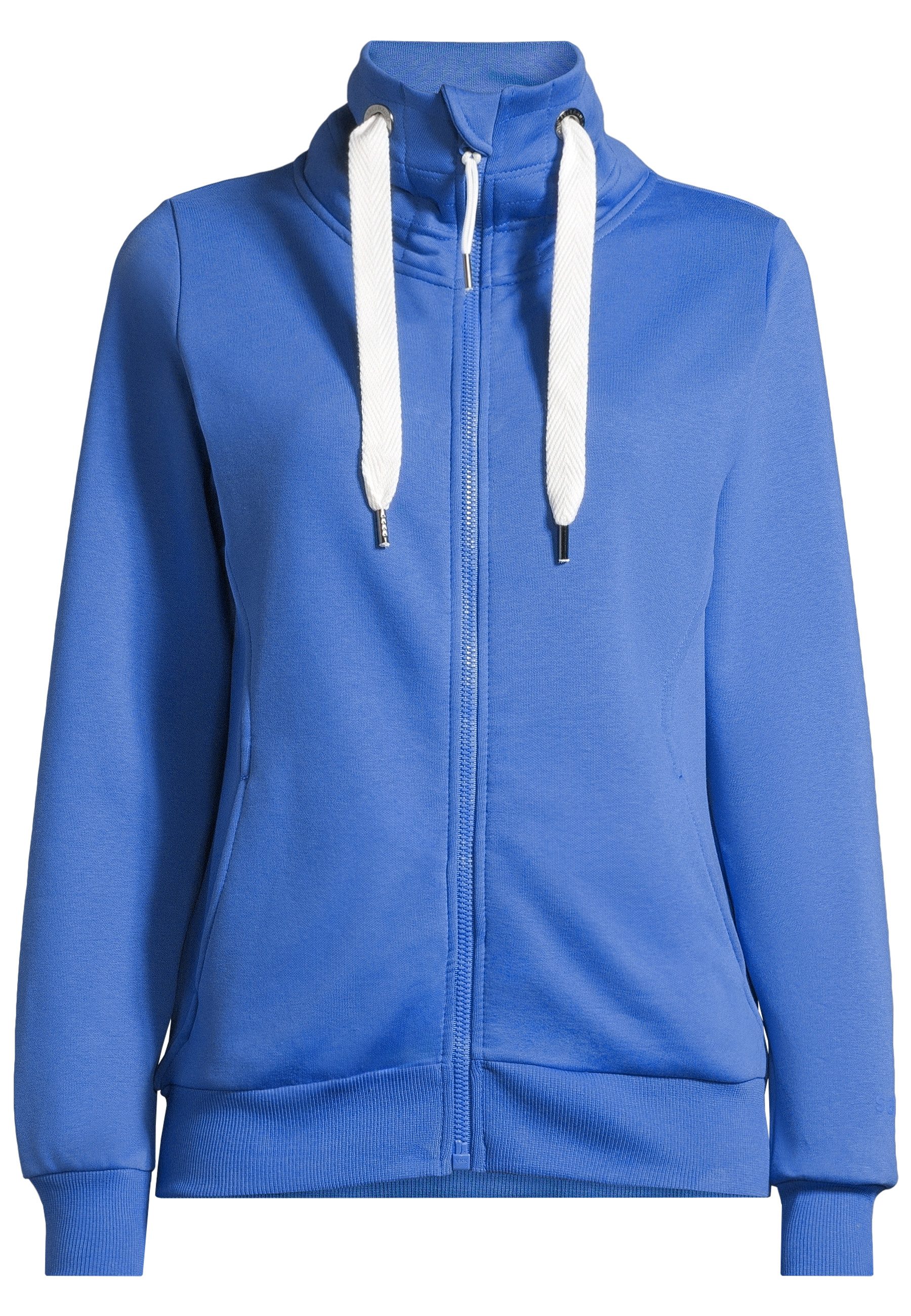 Applikationen | Stehkragen-Sweatjacke mit farblich abgestimmten Kordeln, Reißverschlüssen und Rippenbündchen |
