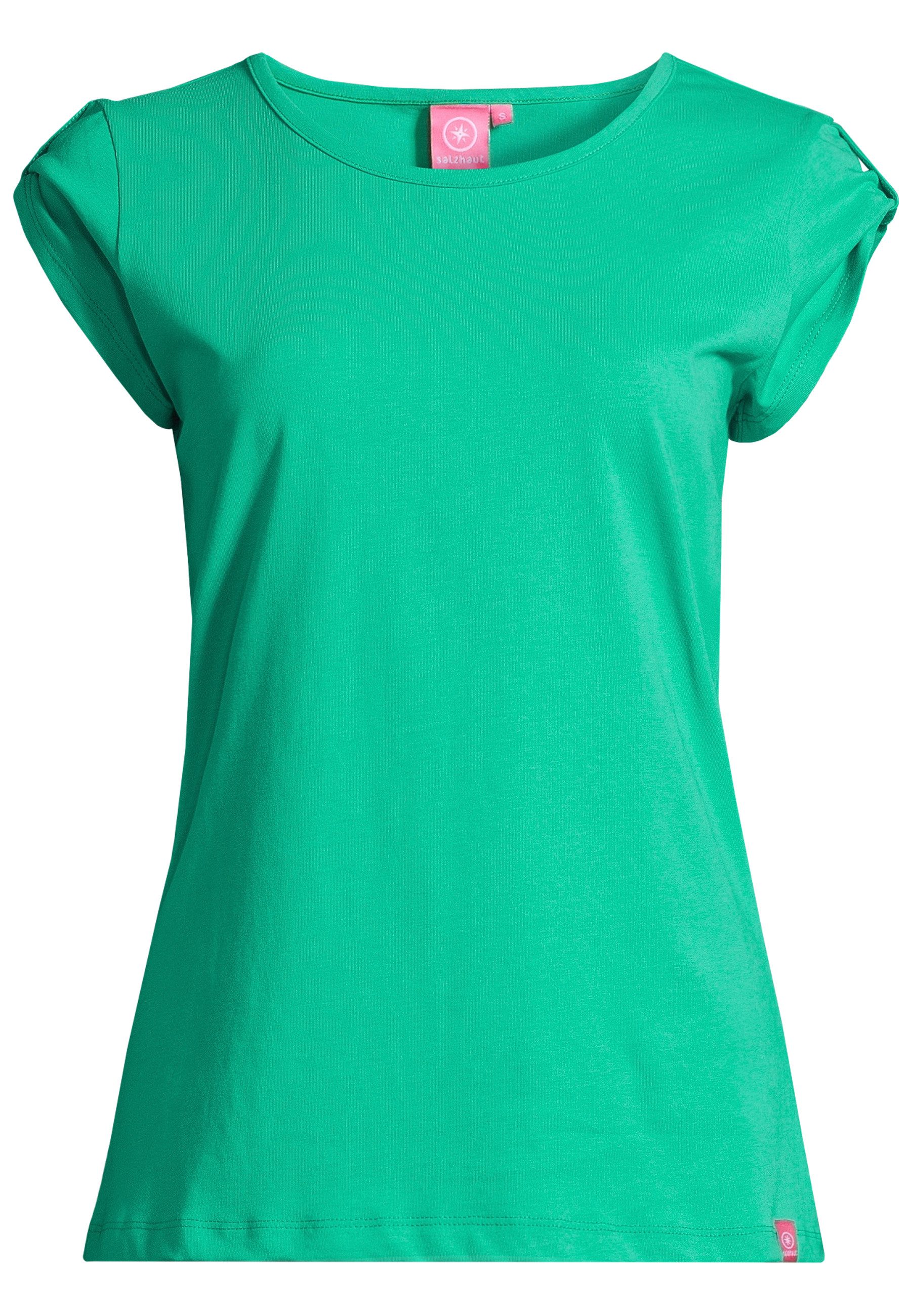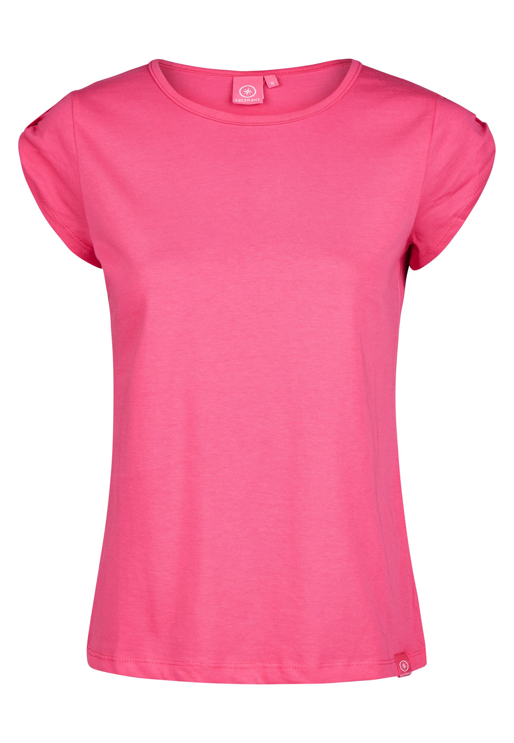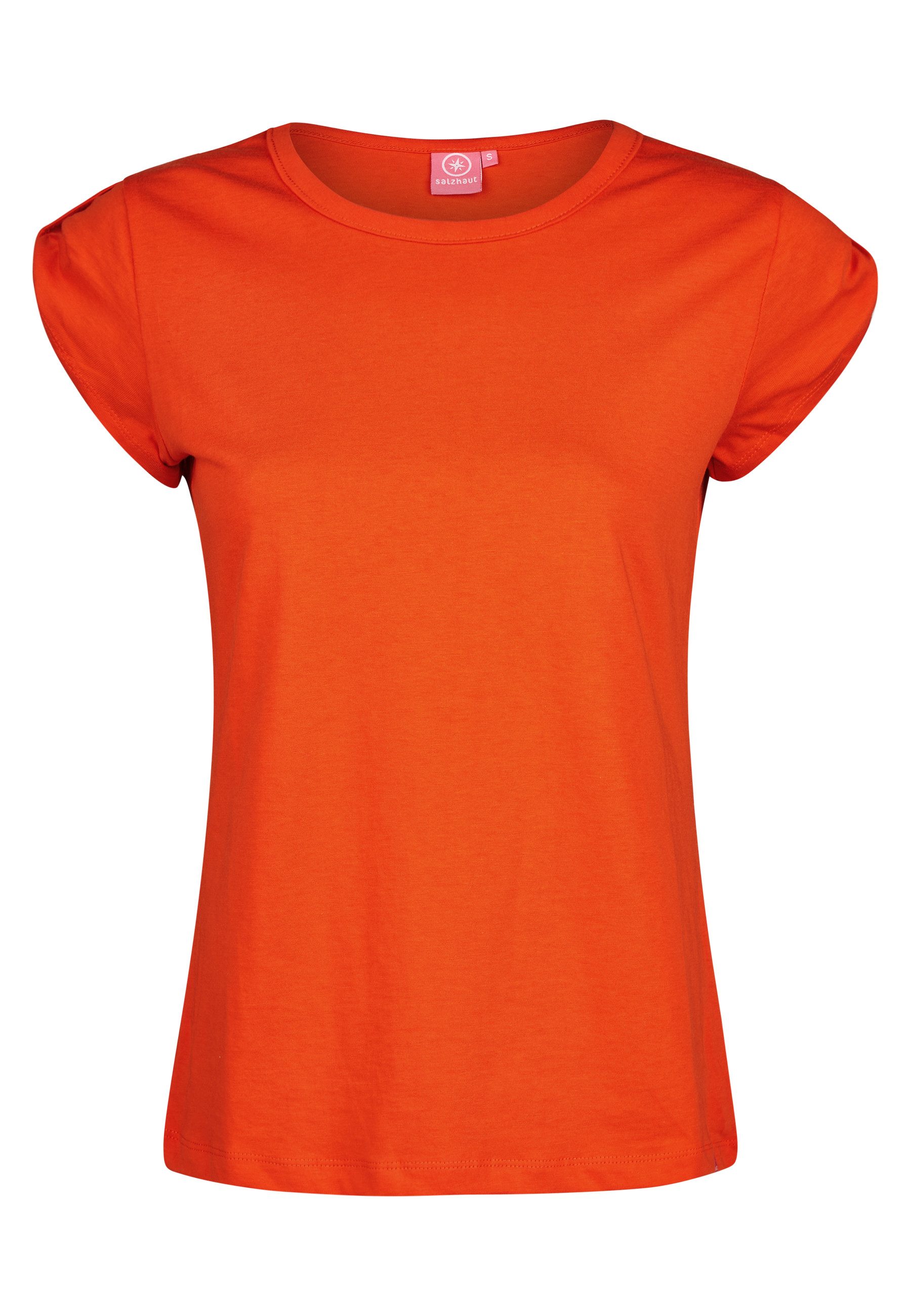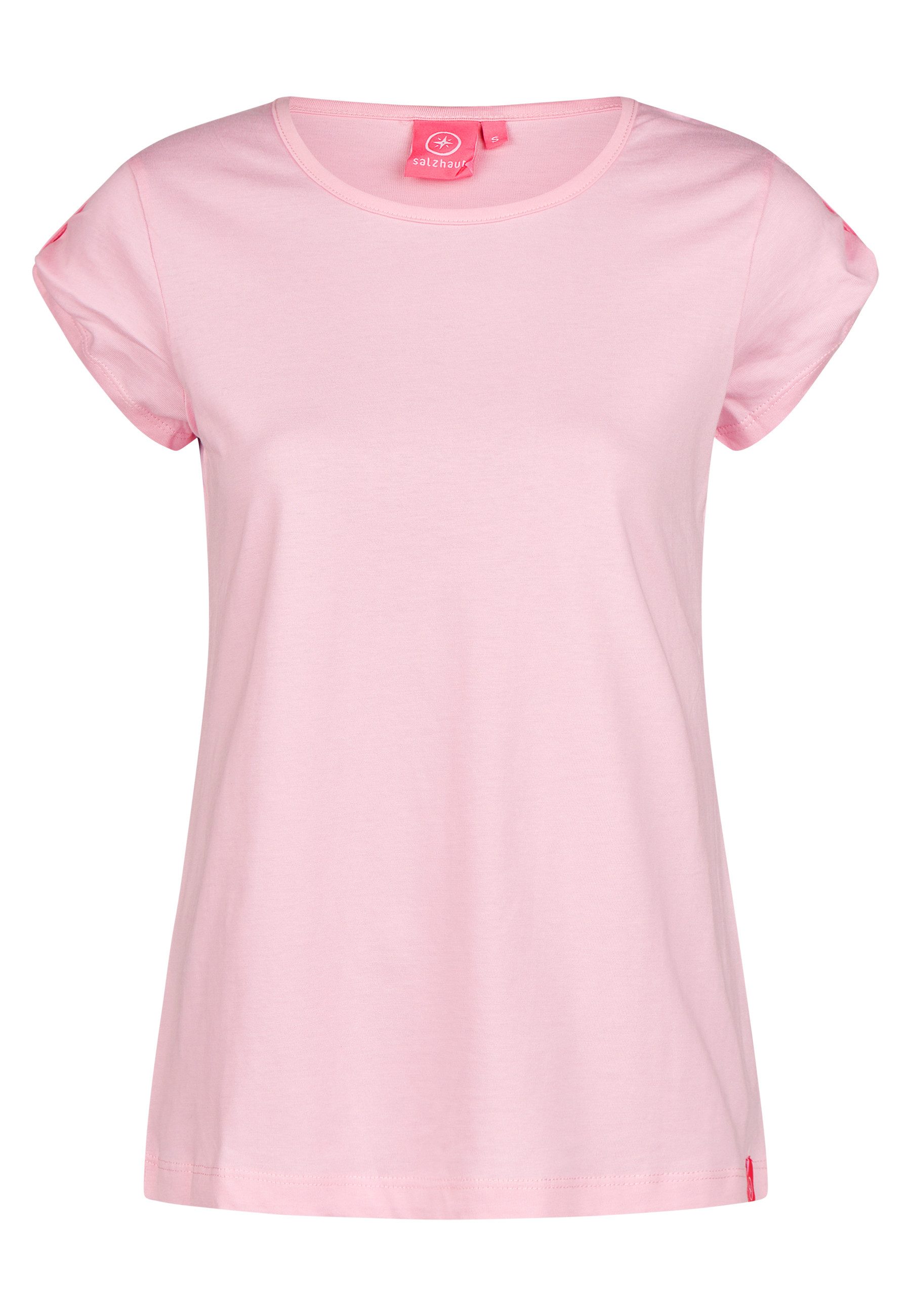 Applikationen | Klassisches T-Shirt mit tollem Schnitt und pinkem salzhaut-Badge |