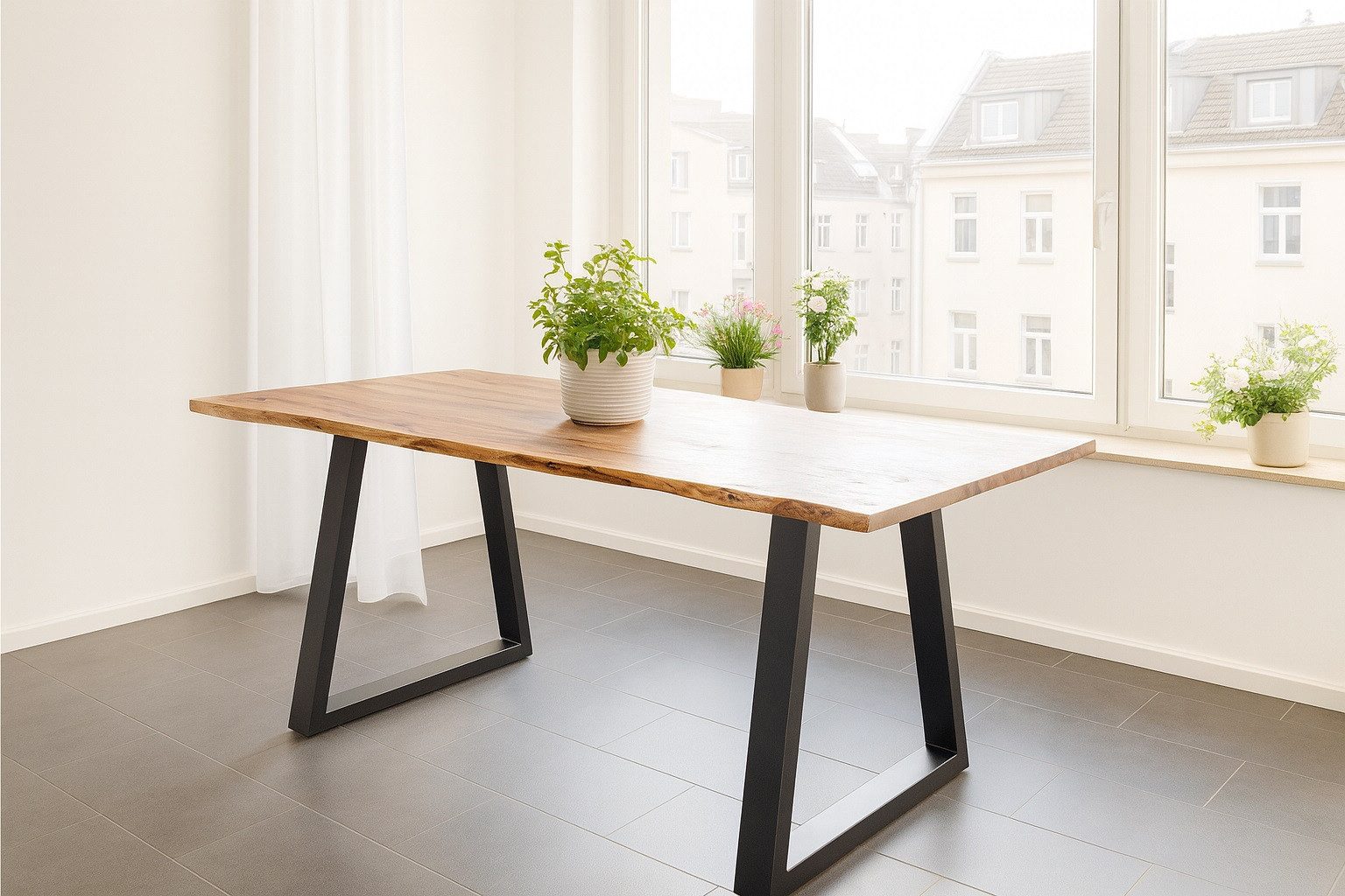Schöne natürliche Holzmaserung, Tischbeine in schwarz, mit echter Baumkante