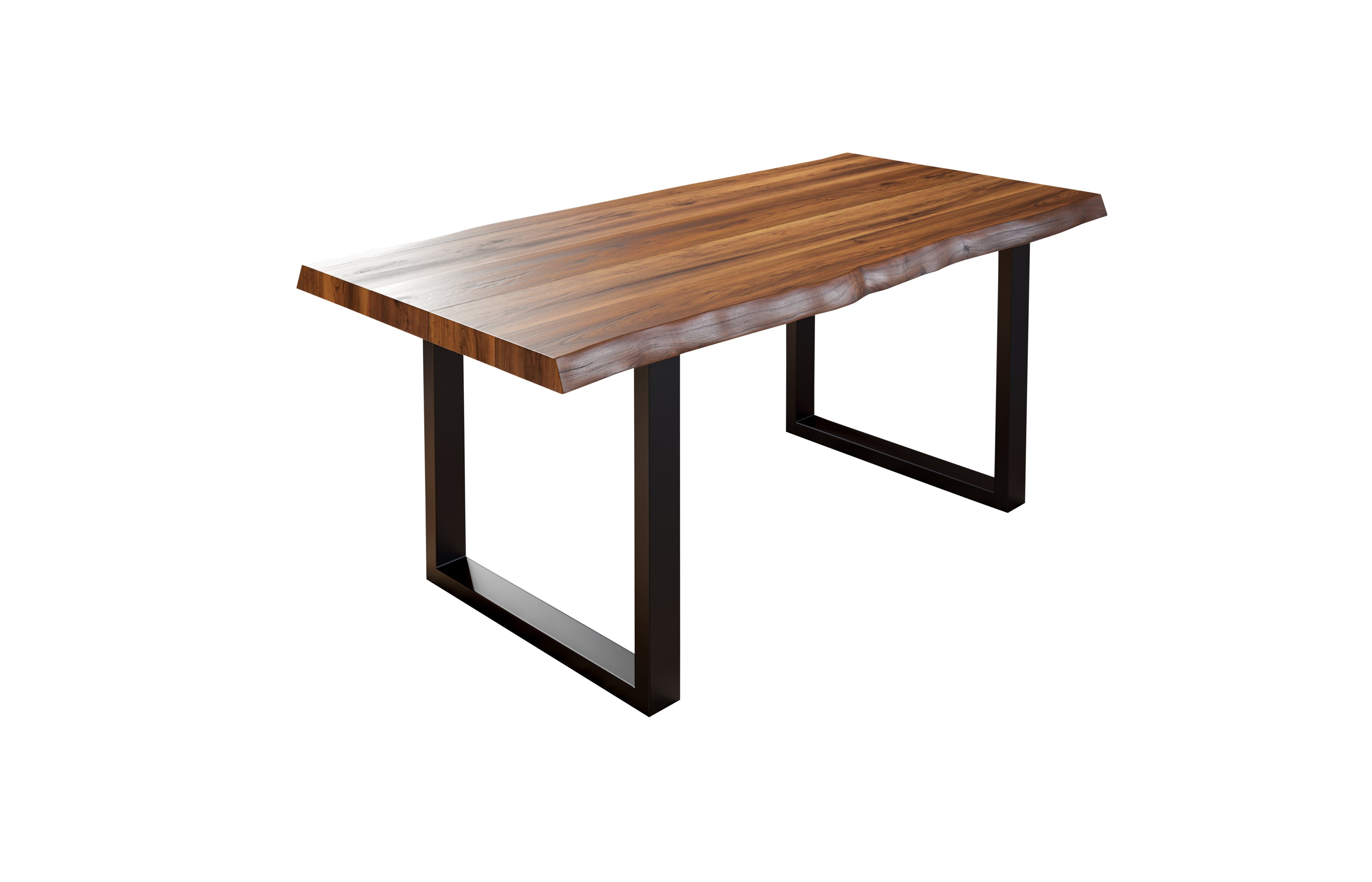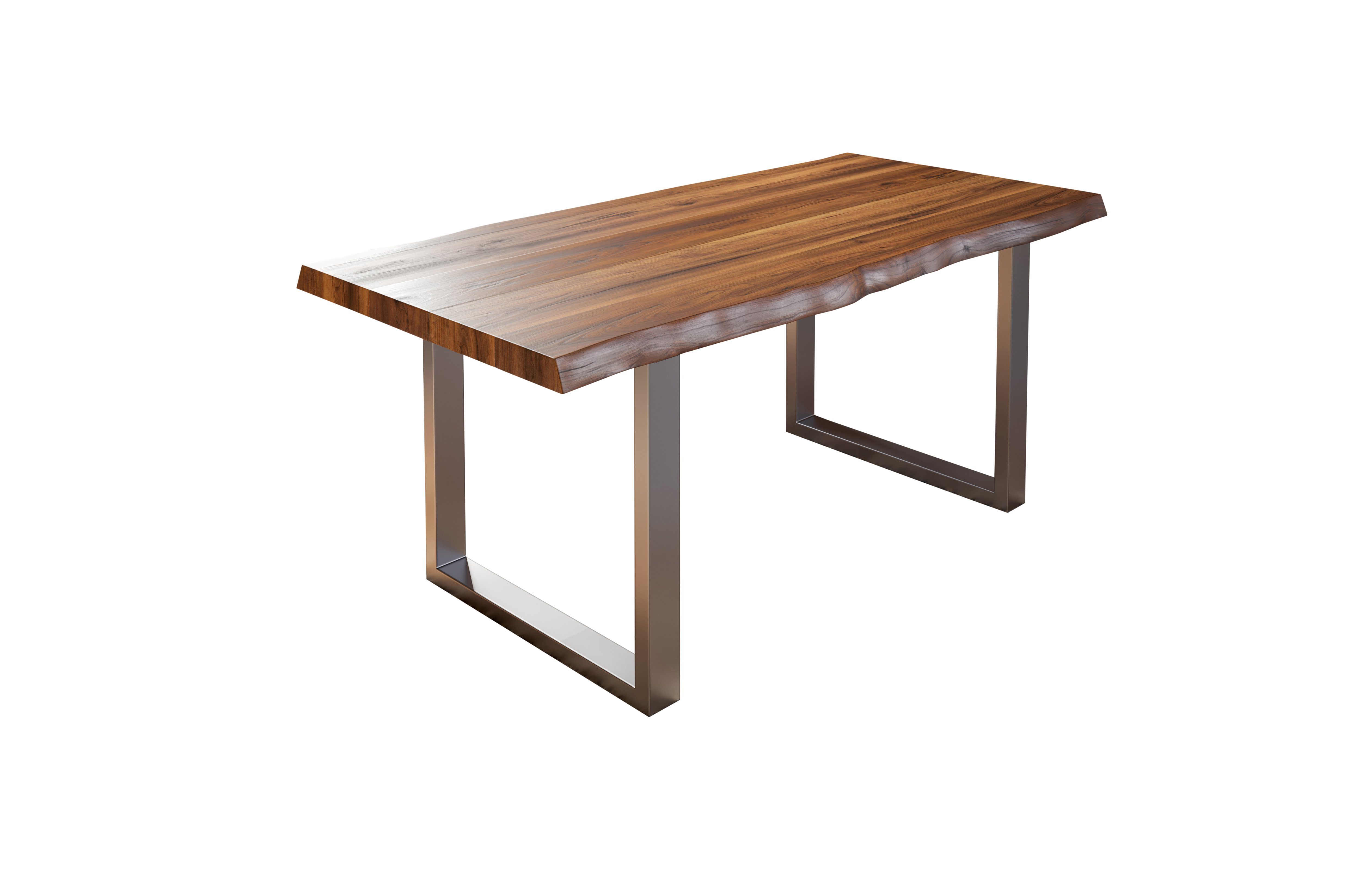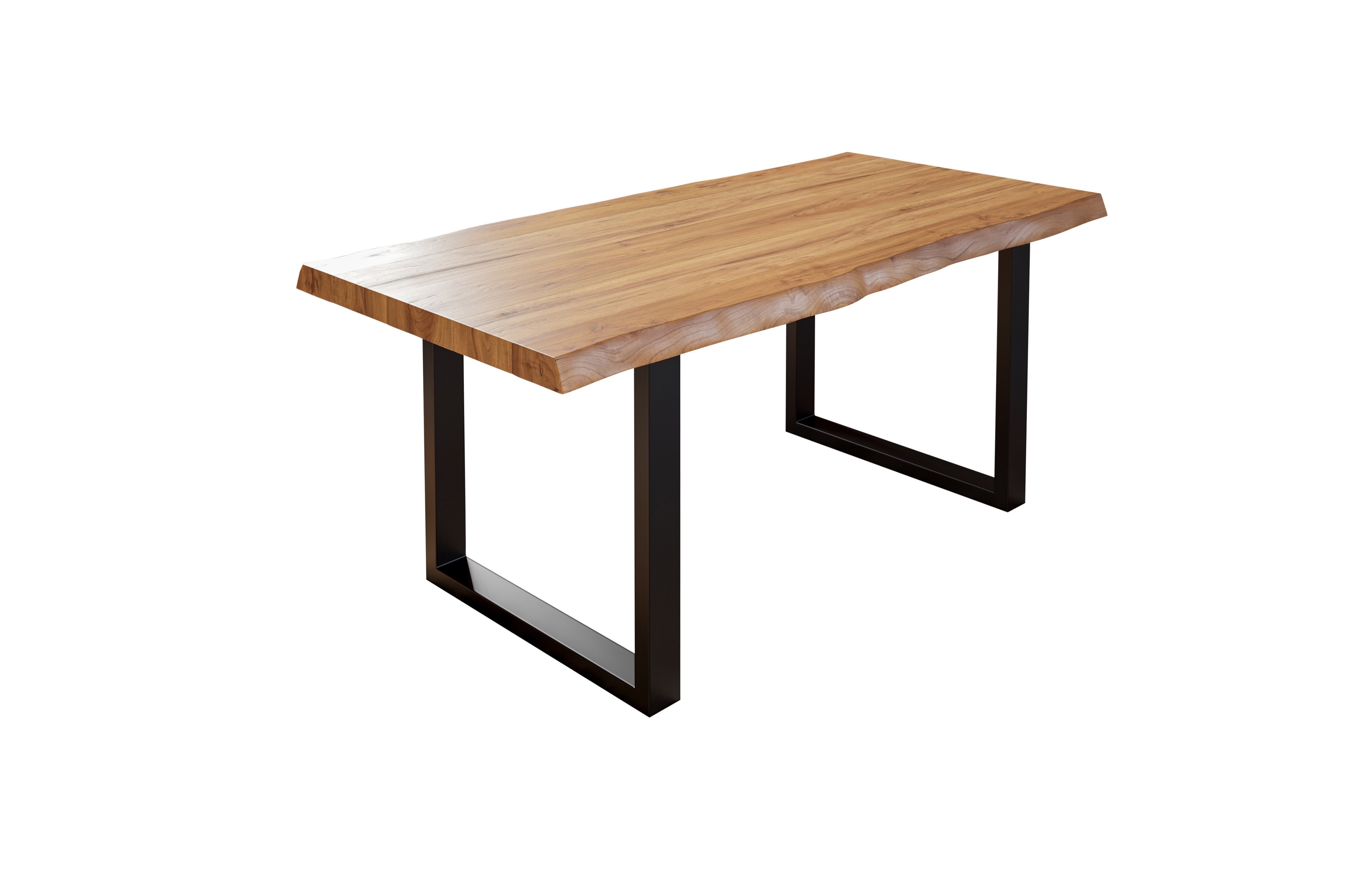 Natur Pur – Besonderes Highlight des Esszimmertisches sind die Tischkanten, die den natürlichen Formen eines Baumes entsprechen und direkt aus dem Baumstamm geschnitten wurden. Daher kann die Tischplattenstärke Ihres ausgewählten Tisches je nach ursprünglichem Wuchs zwischen 47 und 55 mm betragen.Art Gestell | U-Gestell |