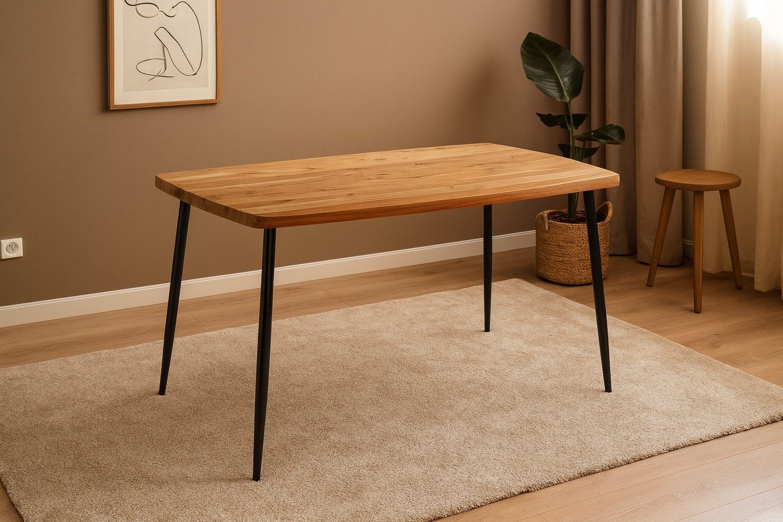 Pflegehinweise | Pflegeanleitung für geölte Tische Möbel aus Massivholz verleihen Raumen eine gewisse Ruhe, Natürlichkeit und schaffen eine angenehme Atmosphäre. Damit das auch so bleibt, ist eine entsprechende Pflege der Lieblingsstücke erforderlich - das gilt speziell für Möbel, die täglich beansprucht werden, wie beispielsweise Tische. Gönnen Sie daher Ihrem Möbelstück zur Pflege und Auffrischung der Oberfläche von Zeit zu Zeit 1- bis 2-mal jährlich eine Behandlung mit einem natürlichen Möbelöl. Das gelegentliche Nachölen von Massivholzmöbeln können Sie ganz einfach selbst erledigen. Mit unserem Schritt für Schritt Anleitung erstrahlt Ihr Möbelstück in Kürze in neuem Glanz! Zunächst ist wichtig, dass die Oberfläche Ihres Möbelstücks bereits geölt oder noch unbehandelt ist. Gewachste, lasierte oder lackierte Oberflachen müssen erst abgeschliffen werden, bevor eine Behandlung mit Öl möglich ist. Wir empfehlen natürliches Hartöl, Leinöl! oder ein Öl mit Wachsanteil. Testen Sie zunächst an einer unauffälligen Stelle, welchen Effekt das Öl auf Ihr Möbelstück hat und ob Ihnen die neue Optik gefällt. Oftmals wird Holz durch einölen nämlich dunkler. Bitte führen Sie die Reinigung wie folgt durch: Verwenden Sie zur Säuberung des Tisches ein mildes Reinigungsmittel (zum Beispiel Geschirrspülmittel). Des Впередen benötigen Sie einen Lappen und einen Eimer, den Sie mit Wasser und etwas Spülmittel füllen. Nun wischen Sie mit dem leicht nassen Lappen über die gesamte Fläche Ihres Tisches. Um die Trocknung des Tisches zu beschleunigen, sollten Sie mit einem trockenen Tuch noch einmal über die Tischfläche wischen. Sobald der Tisch getrocknet ist, können Sie mit dem Ölen beginnen. Hierzu verwenden Sie bitte Leinöl und einen Schwamm (wahlweise eignet sich auch ein Tuch oder eine Küchenpapierrolle). Anschließend lassen Sie circa 75 ml Öl auf den Tisch laufen und verreiben dieses gleichmäßig über den ganzen Tisch. Bitte achten Sie darauf, dass sich von nun an mindestens zwei Stunden kleine Kinder oder Tiere in der Nähe des Tisches fernhalten sollten, da das Öl nicht zum Verzehr geeignet ist. Zudem sollten Sie den Kontakt von Kleidungsstücken mit dem frisch geölten Tisch vermeiden. Achtung: Bitte waschen Sie den Schwamm anschließend sehr gut aus, es besteht die Gefahr der Selbstentzündung! Falls Sie den Eindruck haben, dass die Oberfläche Ihres Tisches zu rau ist, können Sie diese vor dem Ölen mit einem Stück Schleifschwamm abreiben. Es ist möglich, dass die Farbe des Tisches danach heller wird. Sobald der Tisch anschließend geölt wird, erhält er wieder einen dunkleren Farbton. |