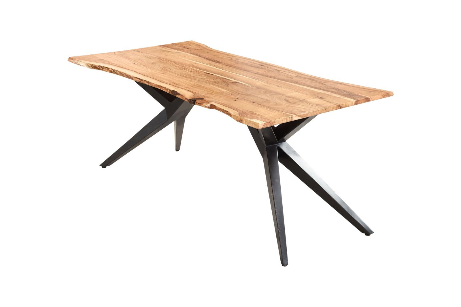 Der Esstisch Linda besteht aus einer Massivholztischplatte mit Baumkante und einem eleganten Tischgestell. Massivholz ist belastbar und wohnlich zugleich und passt in nahezu jeden Einrichtungsstil.