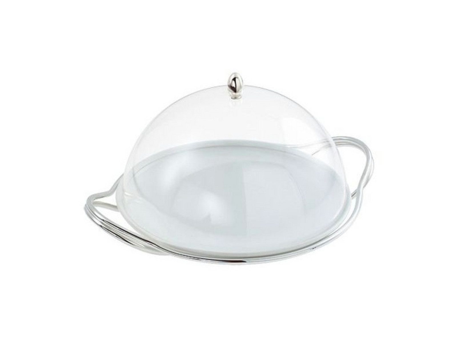 Sambonet Living Platte mit Gestell & Haube rund 32cm (56412-32) Metall/Porzellan
