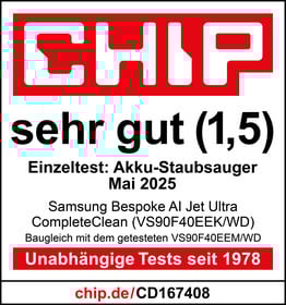 Testurteil von Chip.de vom 10.05.2025, Ausgabe Mai 2025, Seite CD167408: "sehr gut (1,5) - baugleich mit dem getesteten VS90F40EEM/WD"