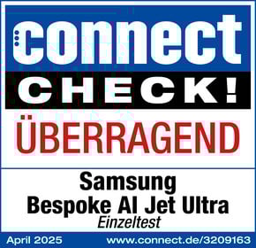 Das Onlinemagazin „connect.de“ testet den Samsung Bespoke AI Jet Ultra im Einzeltest. Die „exzellente“ KI-gesteuerte Saugleistung überzeugt sogar auf Hochflorteppichen. Das Gerät hat eine lange Akkulaufzeit. Zwar bemerken die Tester: „In der Allround-Bürste verfangen sich Haare“. Aber zur umfangreichen Ausstattung gehört auch eine Absaugstation und ein Wechsel-Akku samt Ladegerät. Außerdem passt das Modell auch unter tiefe Möbel. Der „exzellente, durchdachte“ Akku-Staubsauger erreicht das Gesamtergebnis „überragend“.
