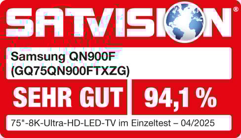 Das Testmagazin „SATVISION“ prüft den Samsung GQ75QN900F im Einzeltest. Das exzellente Bild überzeugt u. a. mit sehr hoher Spitzenhelligkeit, toller Farbdarstellung und „perfekter“ Entspiegelung. Auch der Klang ist sehr stark. Die Bedienung ist komfortabel. Zwar bietet das Gerät „kein Dolby Vision“. Aber zur umfangreichen Ausstattung gehören z. B. zahlreiche Smart-TV-Features wie „fast alle relevanten“ Streamingdienste, „hunderte weiterer Anwendungen“ und viele Highlights für Gamer. Der „sensationelle 8K Neo QLED-TV“ erreicht das Testurteil „SEHR GUT (94,1 %)“.