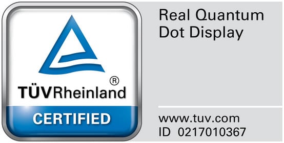 „Zertifiziert nach dem „Real Quantum Dot Display“ Standard des TÜV Rheinland, ausgestellt am 30.04.2025. Dieser bescheinigt die technischen Parameter für die QD-Technologie (Real Quantum Dot Display), nämlich das Vorhandensein von QD-Folie und blauer LED sowie die Analyse des Farbspektrums in Übereinstimmung mit IEC 110/1749/DTR (IEC-Norm noch nicht gültig). Gilt für die Serien Q6F, Q7F, Q8F, QE1F, QN7XF, QN8XF, QN9XF, QN9xxF; https://www.certipedia.com/quality_marks/0217010367?locale=de#“