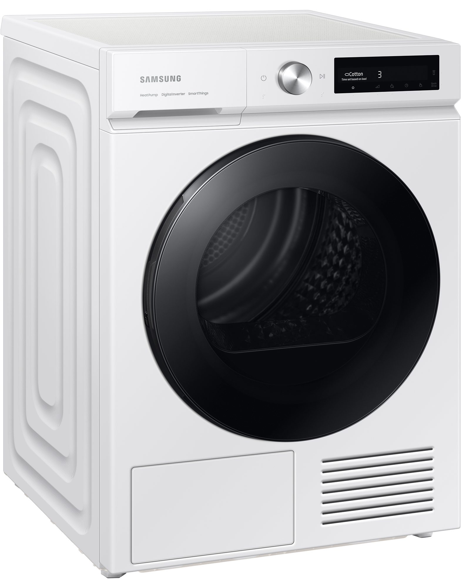 Der Wärmepumpentrockner DV90BB7445GW von Samsung brilliert durch eine hervorragende Ausstattung. Erstklassige Werte im Hinblick auf den Energiebedarf liefert dieser Wärmepumpentrockner mit der Energieeffizienzklasse C (Skala: A bis G). Mit 9 kg Fassungsvermögen eignet sich der Wärmepumpentrockner vor allem für Familien ab 5 Personen. Außerdem bietet der DV90BB7445GW Wärmepumpentrockner unter anderem diese besondere Eigenschaft: Knitterschutz. Eine lange Lebensdauer garantiert die Edelstahltrommel des DV90BB7445GW Wärmepumpentrockners. Dank Innenbeleuchtung hat man beim Be- und Entladen jederzeit alle Wäscheteile im Blick. Außerdem lässt sich der DV90BB7445GW Wärmepumpentrockner durch eine Kindersicherungsfunktion sperren. Mit Maßen von 60 cm x 85 cm x 60 cm (BxHxT) macht der Wärmepumpentrockner eine hervorragende Figur.