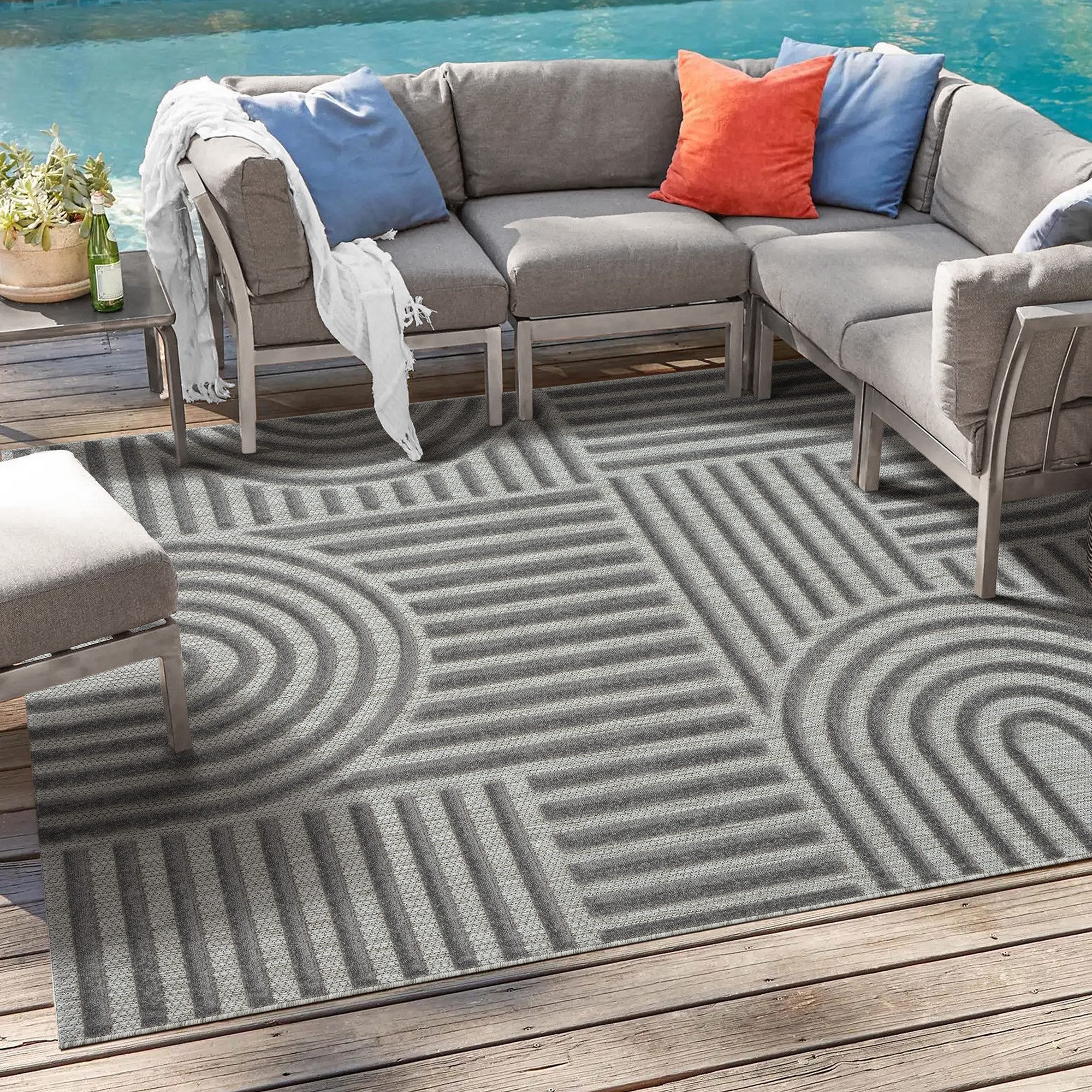 Outdoor Teppiche | Outdoor Teppiche können im geschützten Außenbereich verwendet werden. Bei diesen Teppichen handelt es sich um überaus robuste Teppiche, die wasser - und schmutzabweisend sind. Sie kommen daher auch oft im Eingangsbereich zum Einsatz. |