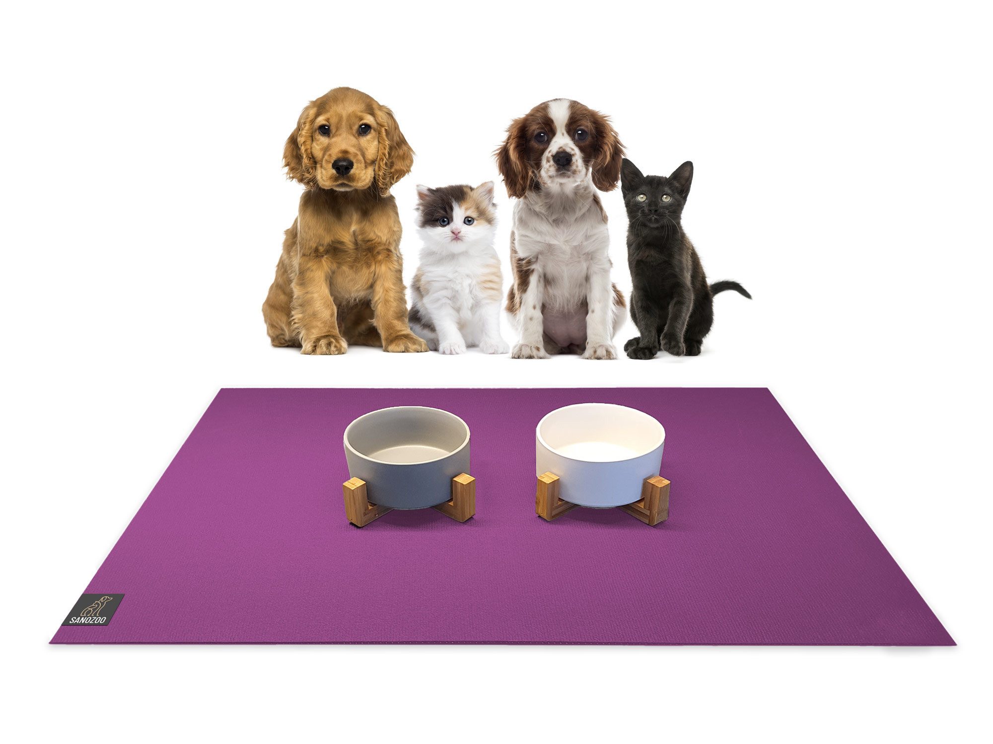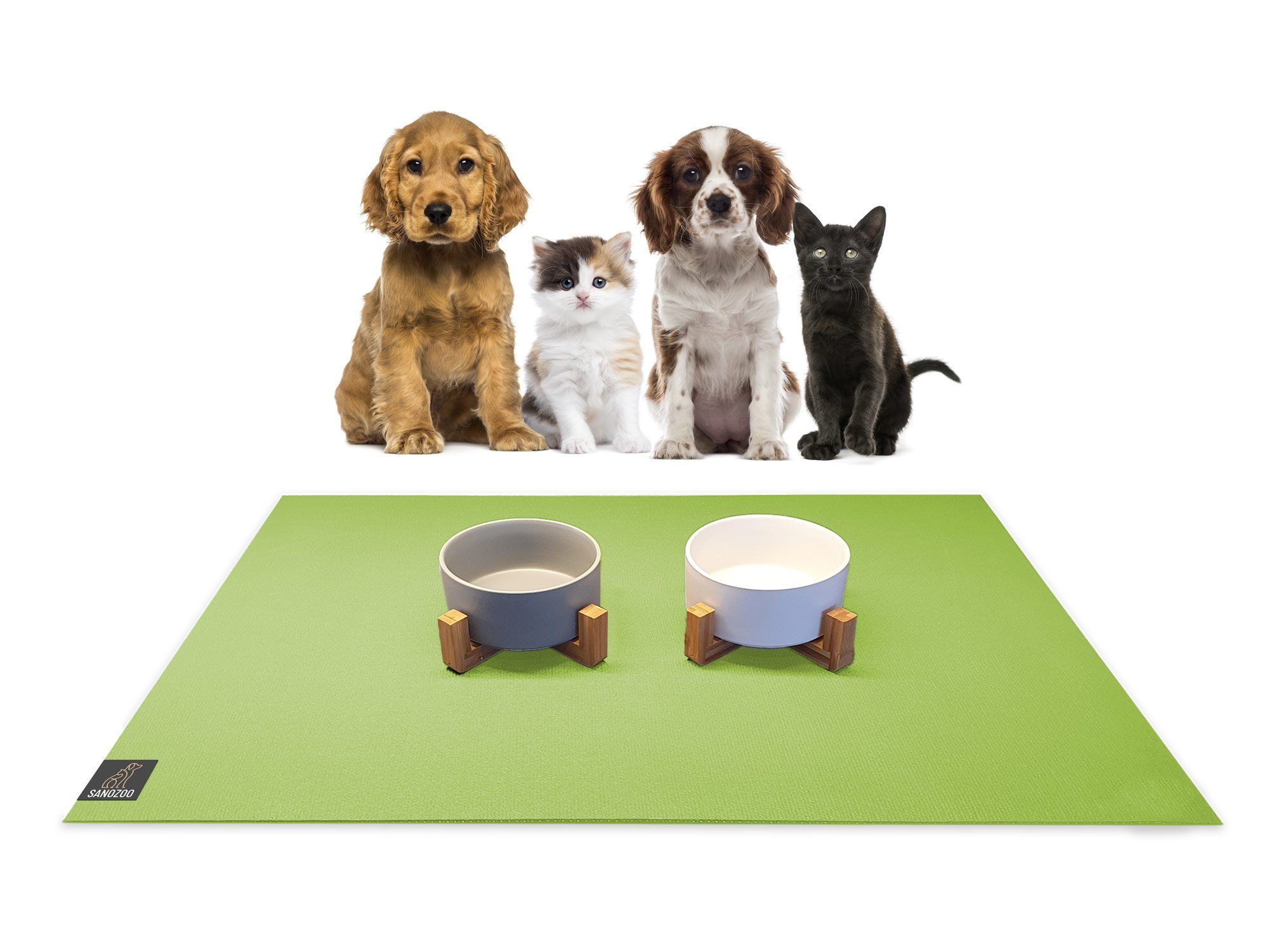 Die Unterlage ist beidseitig rutschfest Dadurch hält sie auch bei sehr forschen Tieren die Futterschüsseln oder Näpfe an Ort und Stelle und verhindert so das Verschütten von Futter und Wasser.
