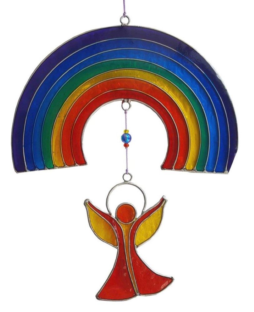 Saraswati Hängedekoration Suncatcher "Engel unter dem Regenbogen" Resin mehrfarbig 16x25cm