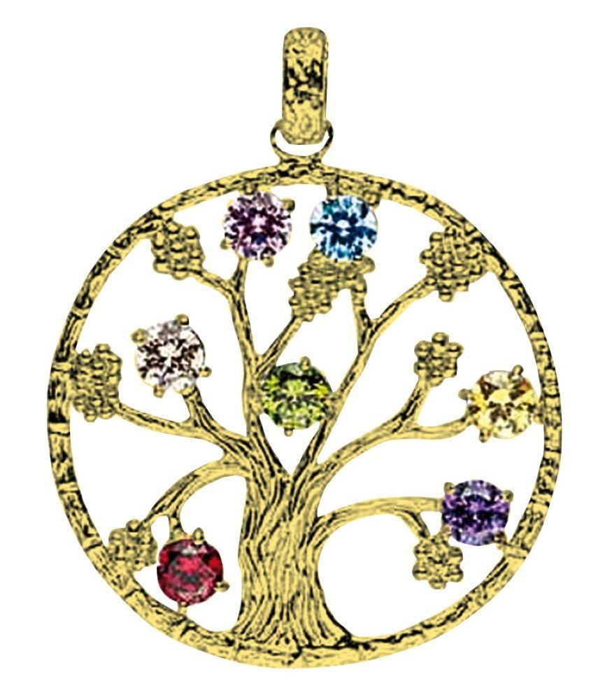 Kettenanhänger Anhänger "Baum des Lebens" mit 7 Zirkonia Messing 5,7g 3cm