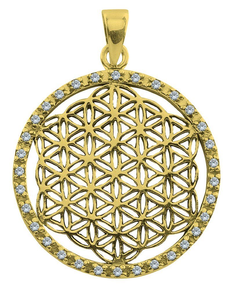 Saraswati Kettenanhänger Anhänger "Blume des Lebens" mit 32 Zirkonia Messing 3,4g 3cm