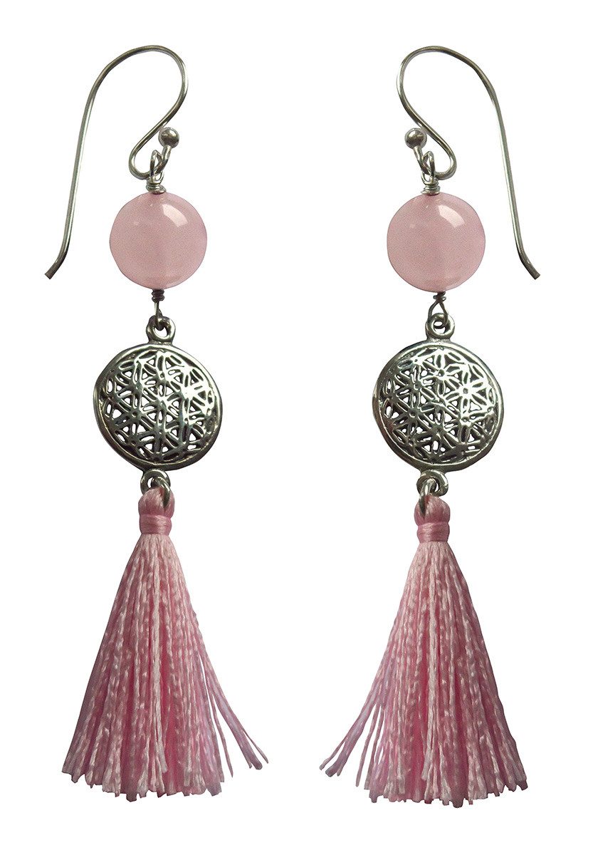 Saraswati Ohrhänger-Set Ohrhänger "Blume des Lebens" 1,2cm Silber 925 mit Rosenquarz-Perle und