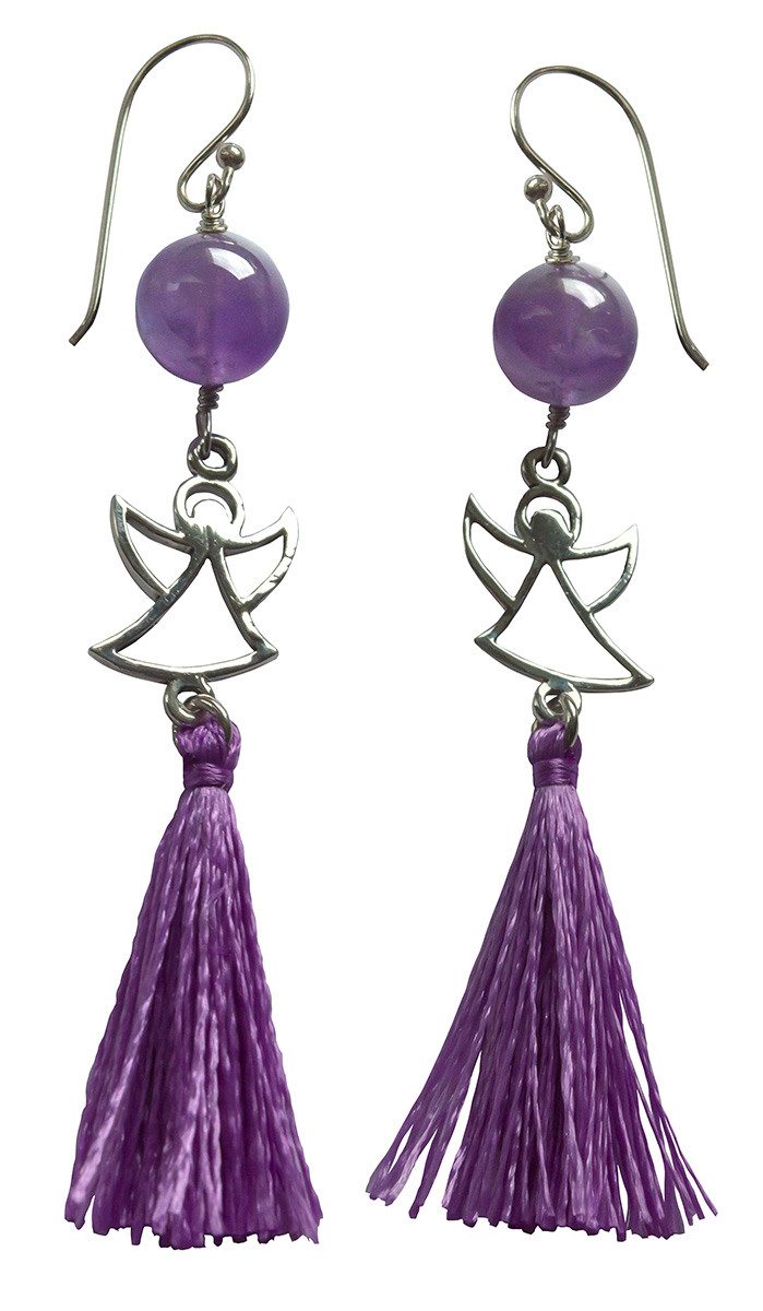 Saraswati Ohrhänger-Set Ohrhänger "Engel" 1,2cm Silber 925 mit Amethyst-Perle und Lila Quaste