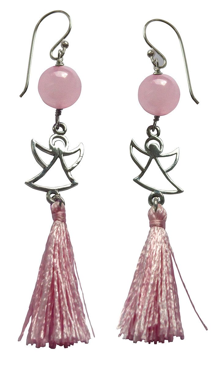 Saraswati Ohrhänger-Set Ohrhänger "Engel" 1,2cm Silber 925 mit Rosenquarz-Perle und Rosa Quast