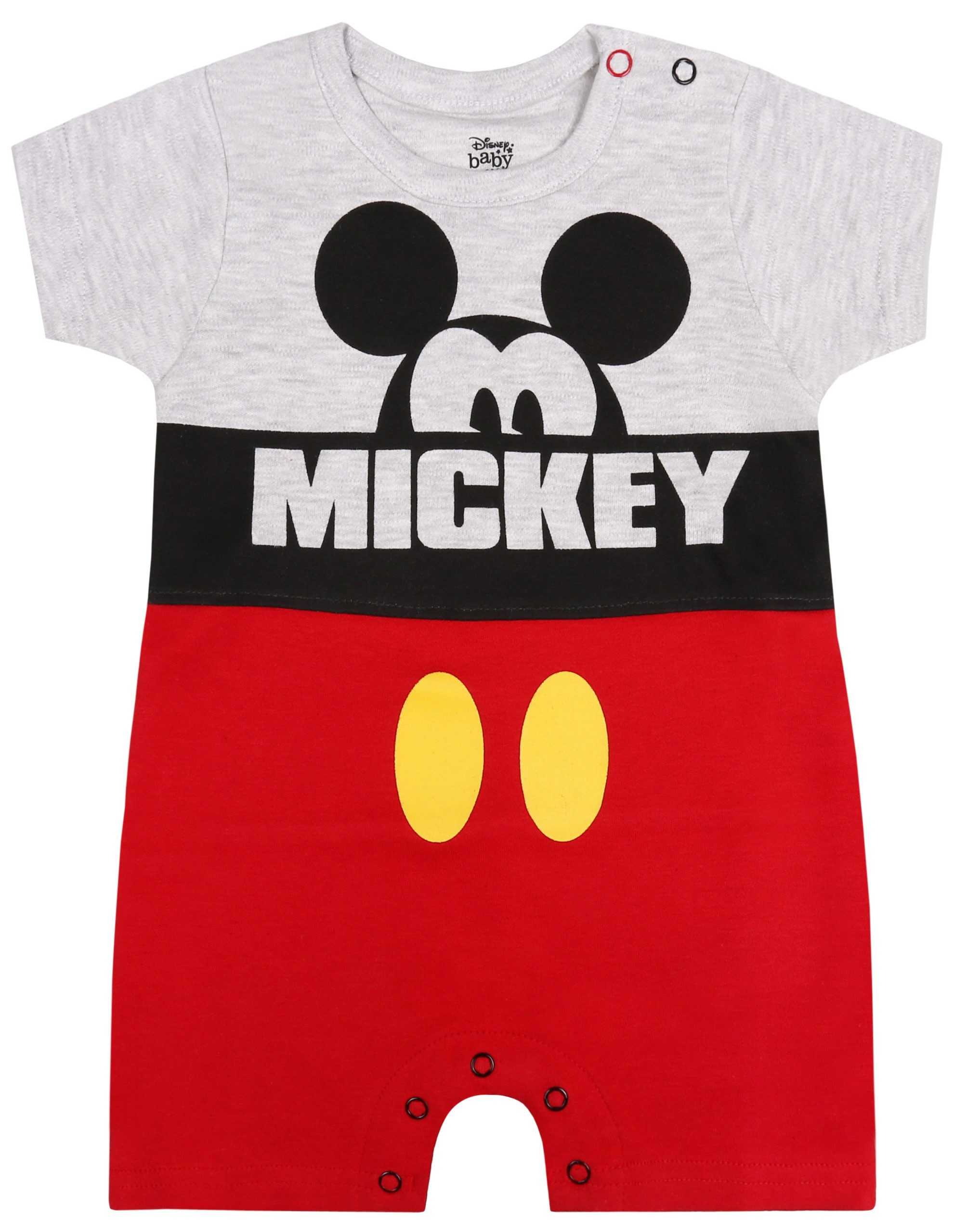 Grau-roter Einteiler für Jungen mit Abbildung von Mickey Maus.