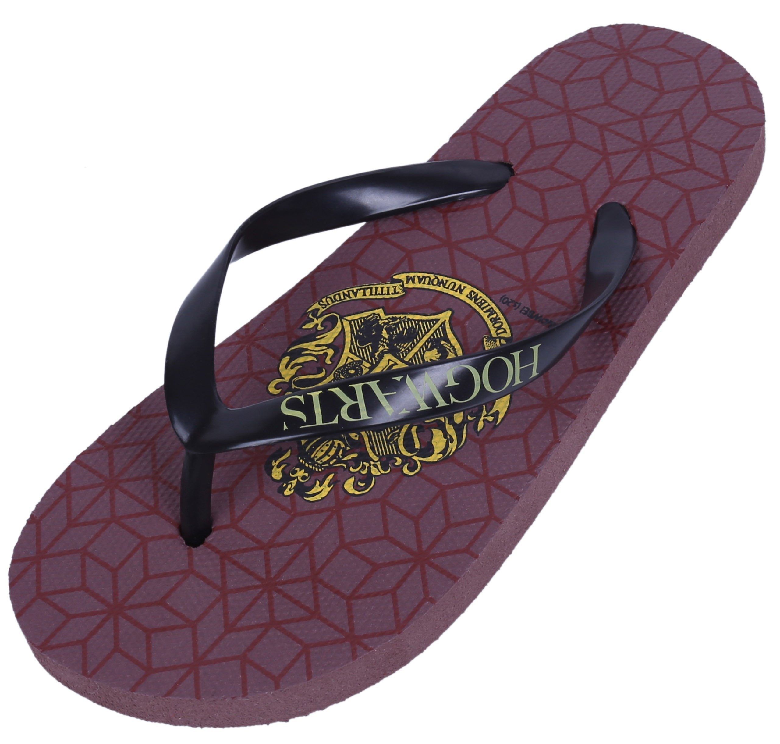 Braune Flip-Flops für Jungen mit geometrischem Muster, mit Wappenmotiv von Zauberschule und Zauberei Hogwart.
