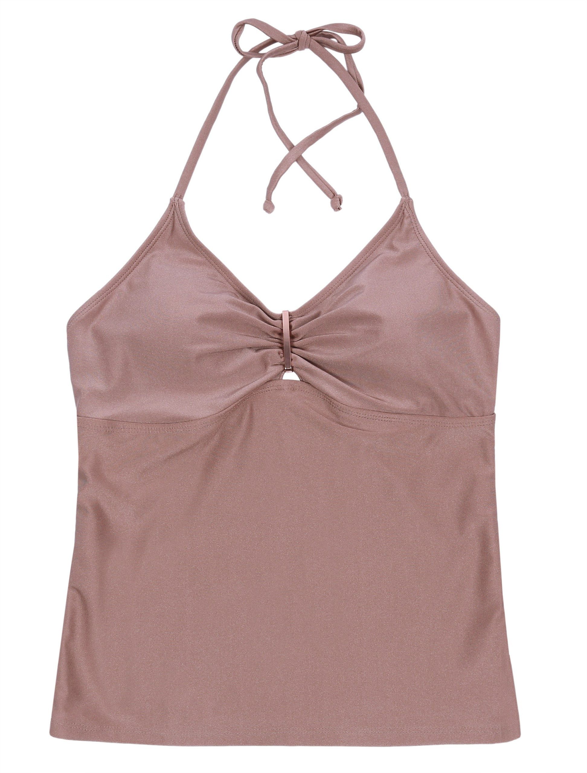 Braunes, leicht schimmerndes Badeanzug-Oberteil.