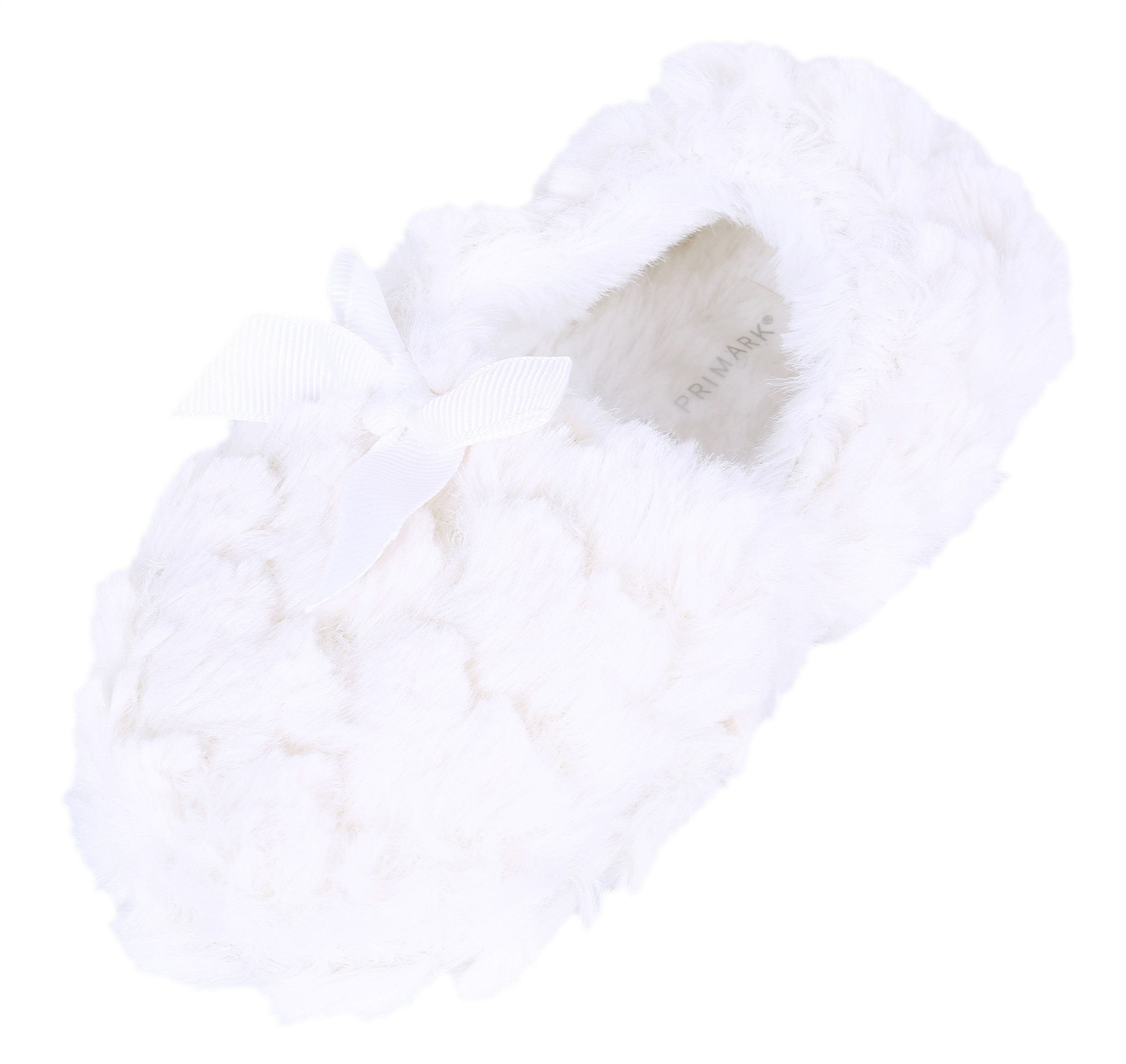 Cremefarbige Hausschuhe, mit Schleife an der Seite.