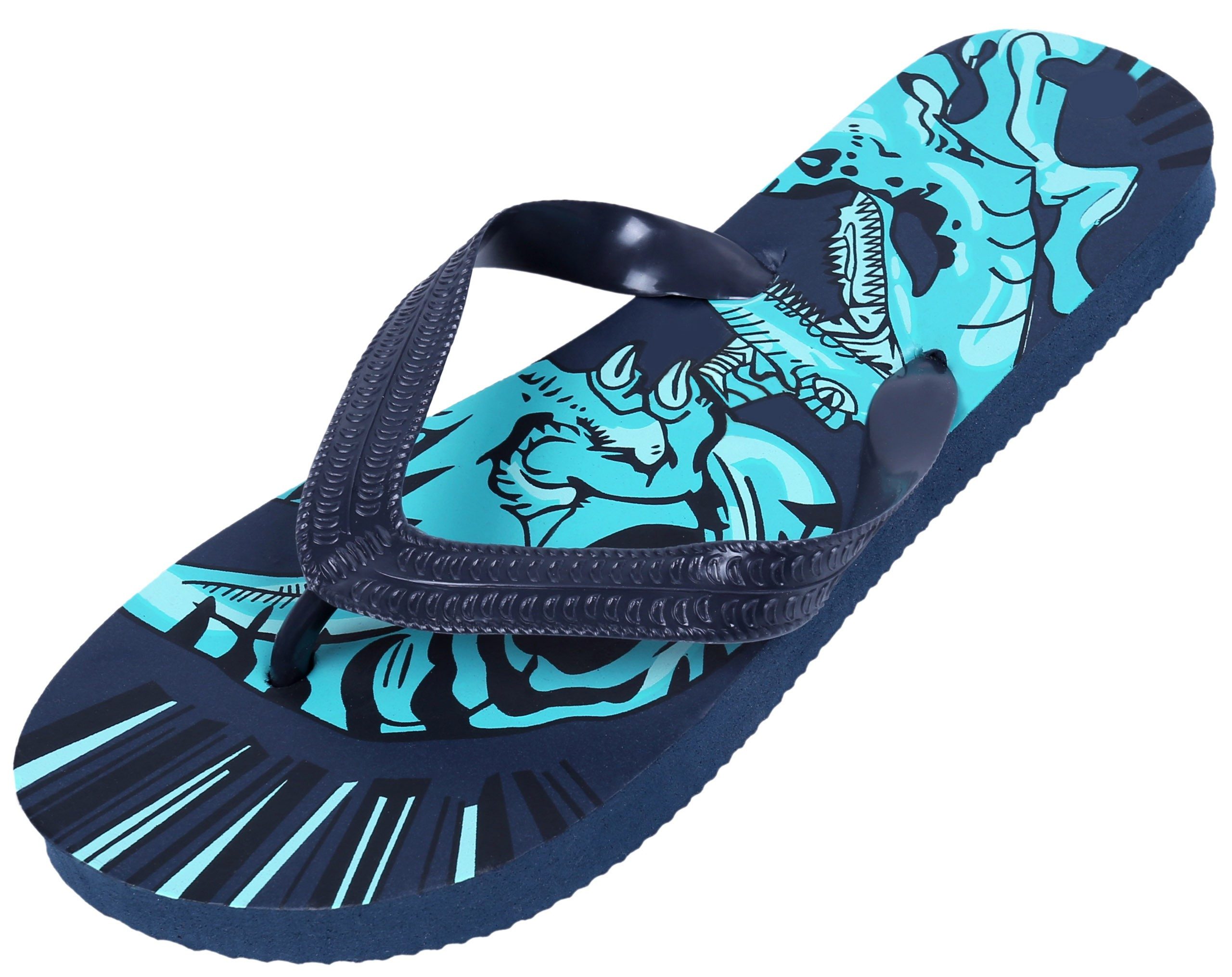 Dunkelblaue Flip-Flops für Jungen mit Abbildungen von Dinosaurier.