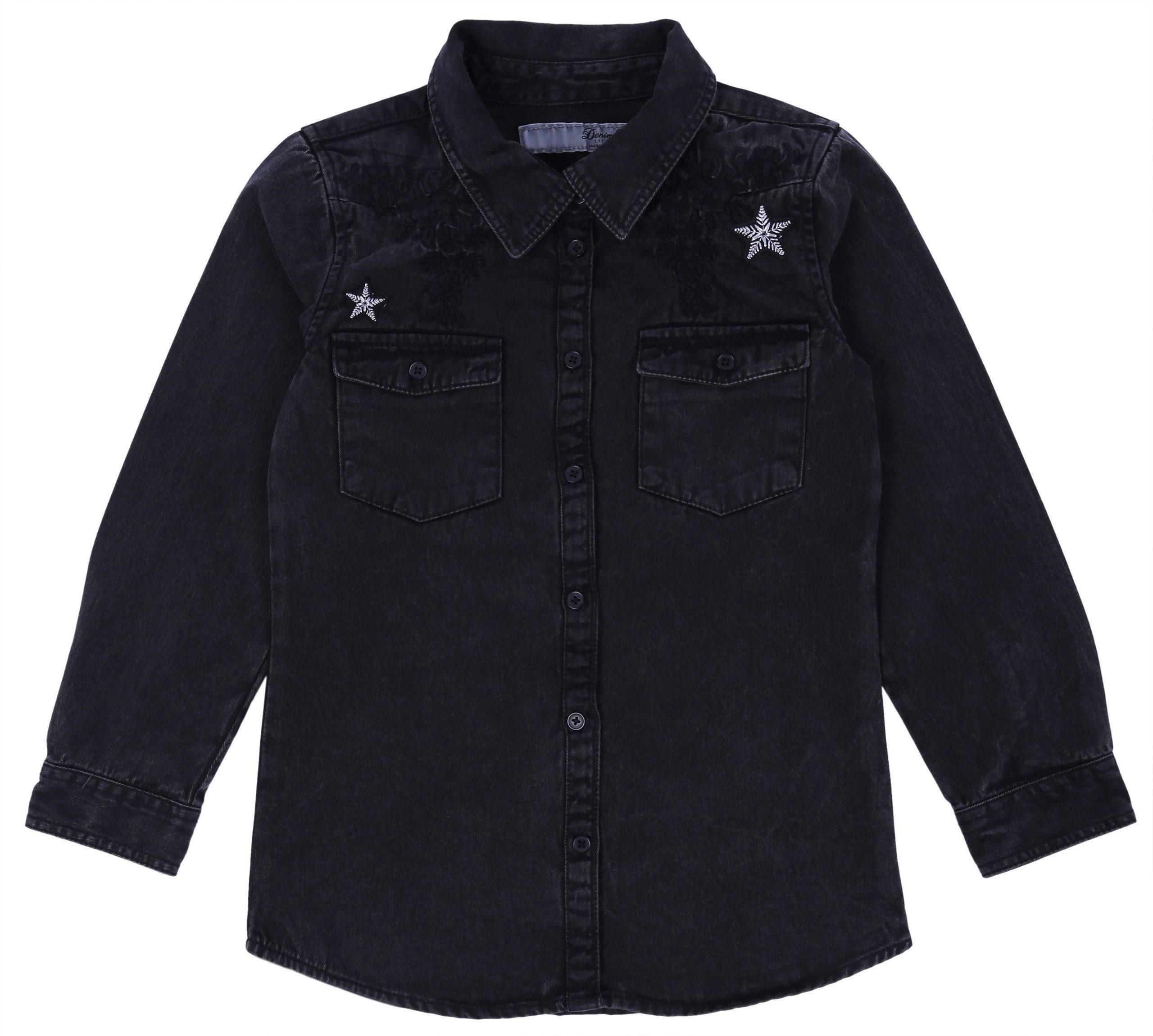 Das Hemd für Mädchen mit langen Ärmel, aus schwarzem Jeansstoff hergestellt.