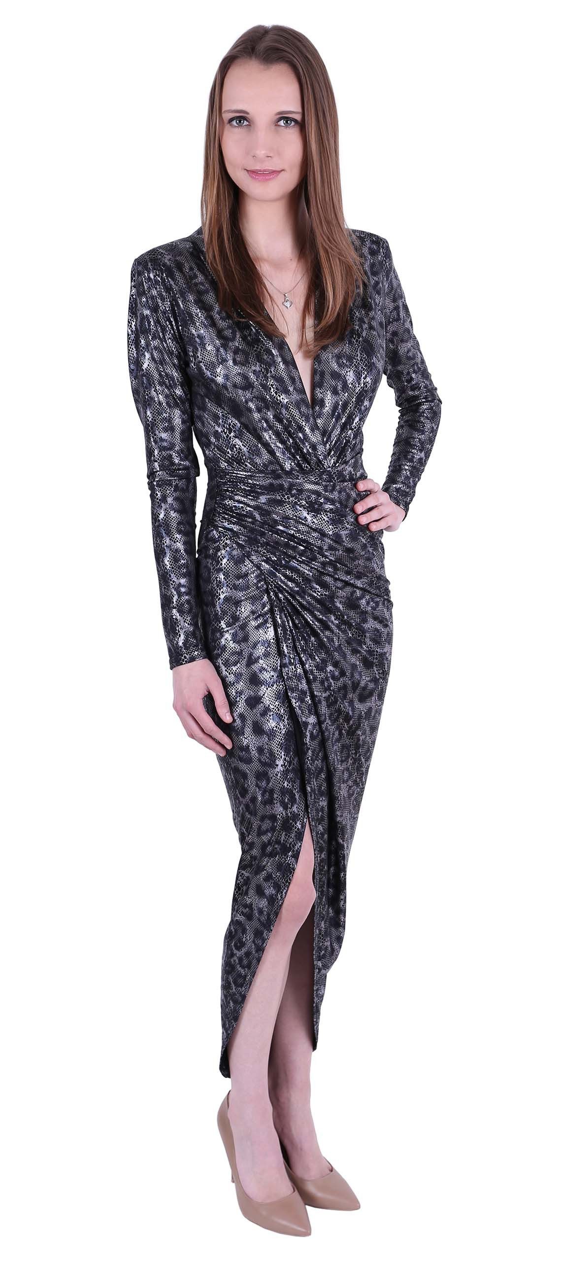 Origineller Schnitt mit Drapierung verleiht dem Kleid einzigartigen Charakter.