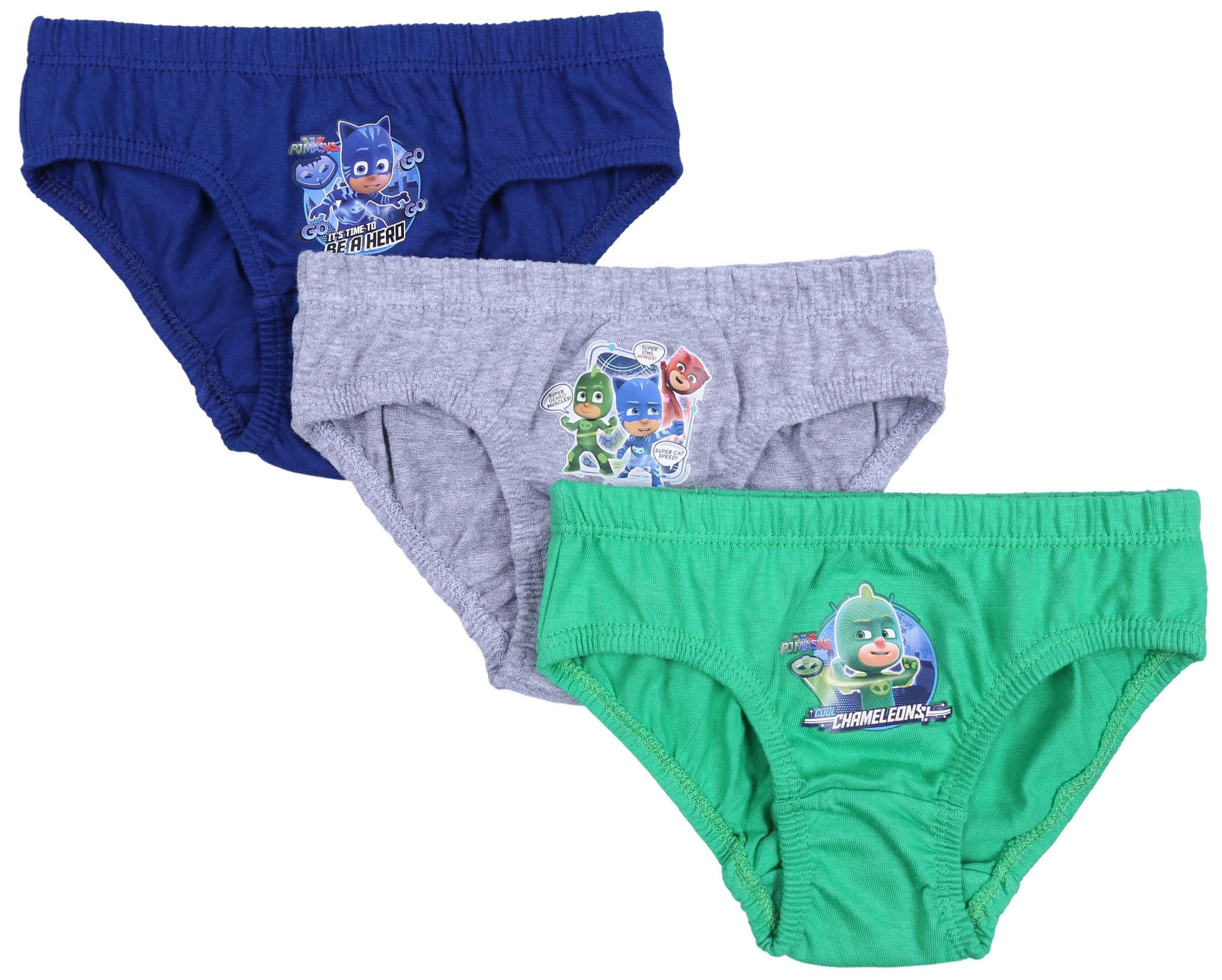 Ein Set von 3x Unterhosen für Jungen mit dem Motiv aus der Zeichentrickserie ''PJ Masks''.