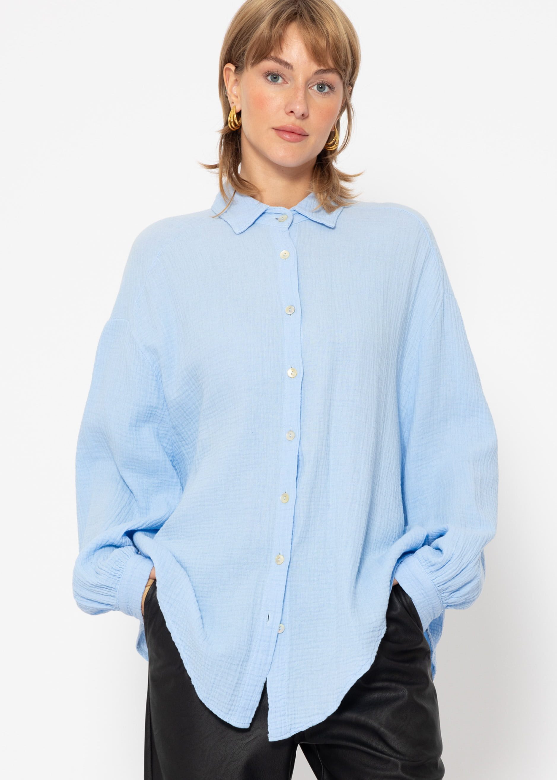Besondere Merkmale | Hemdbluse lang aus Baumwolle mit V-Ausschnitt, One Size (Gr. 36-48) |