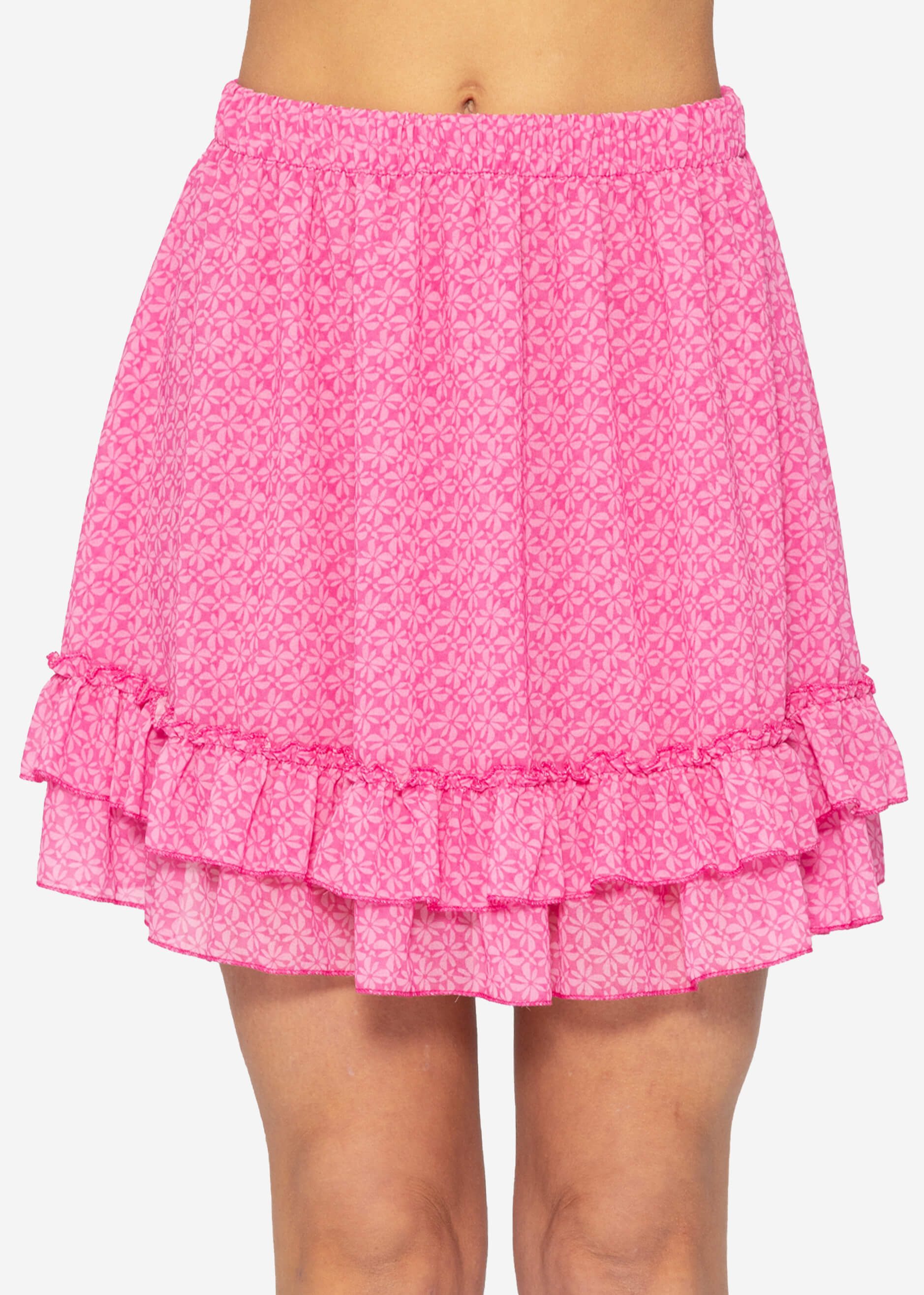Besondere Merkmale | Minirock Elegant mit Gummibund in Leo Blumen Karo Muster Schwarz Beige |