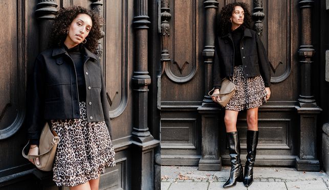Besondere Merkmale | Minirock Elegant mit Gummibund in Leo Punkte Muster Schwarz Beige |