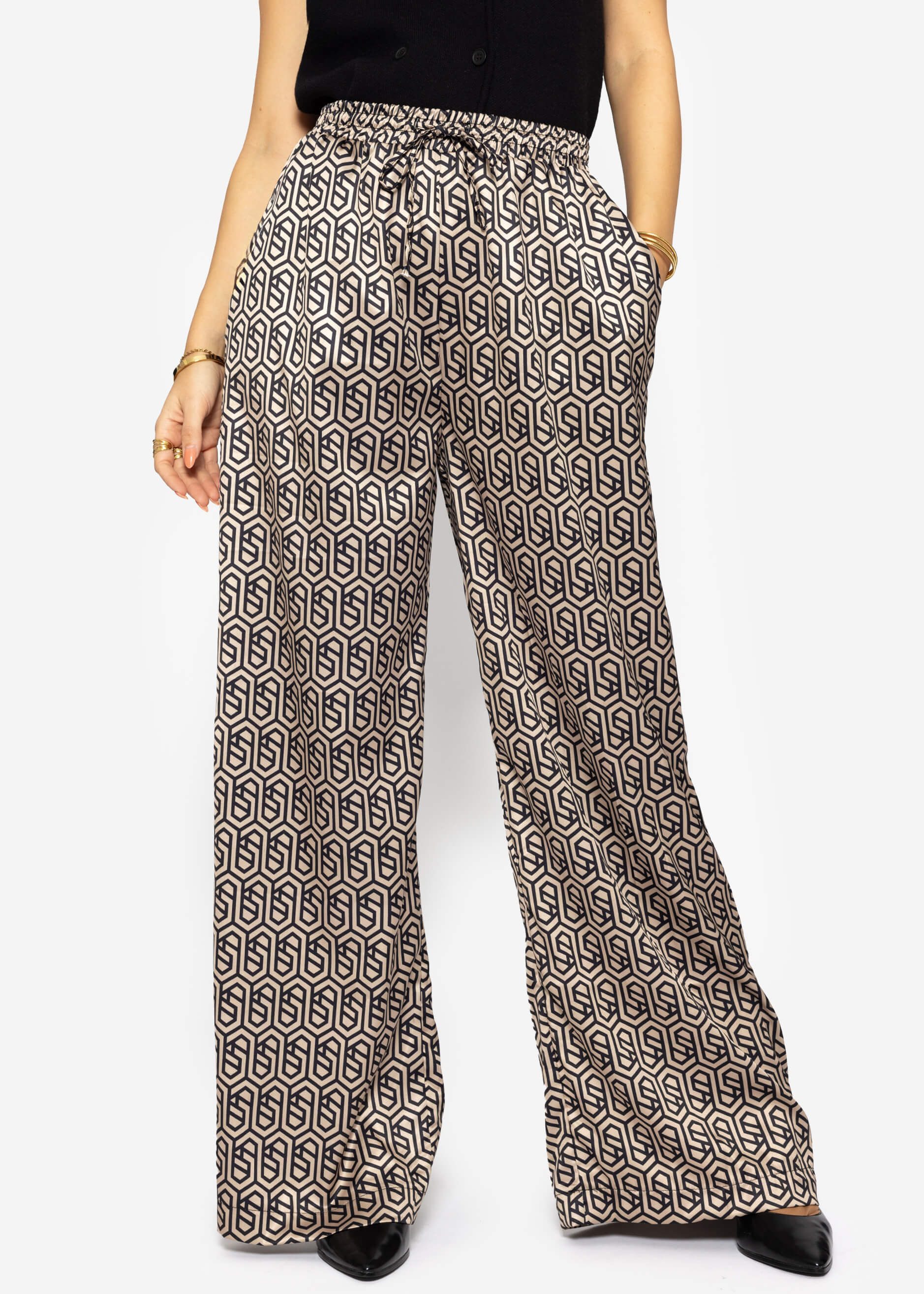 Besondere Merkmale | Lockere Hose aus Satinmaterial in grafisches Muster mit Gummibund |