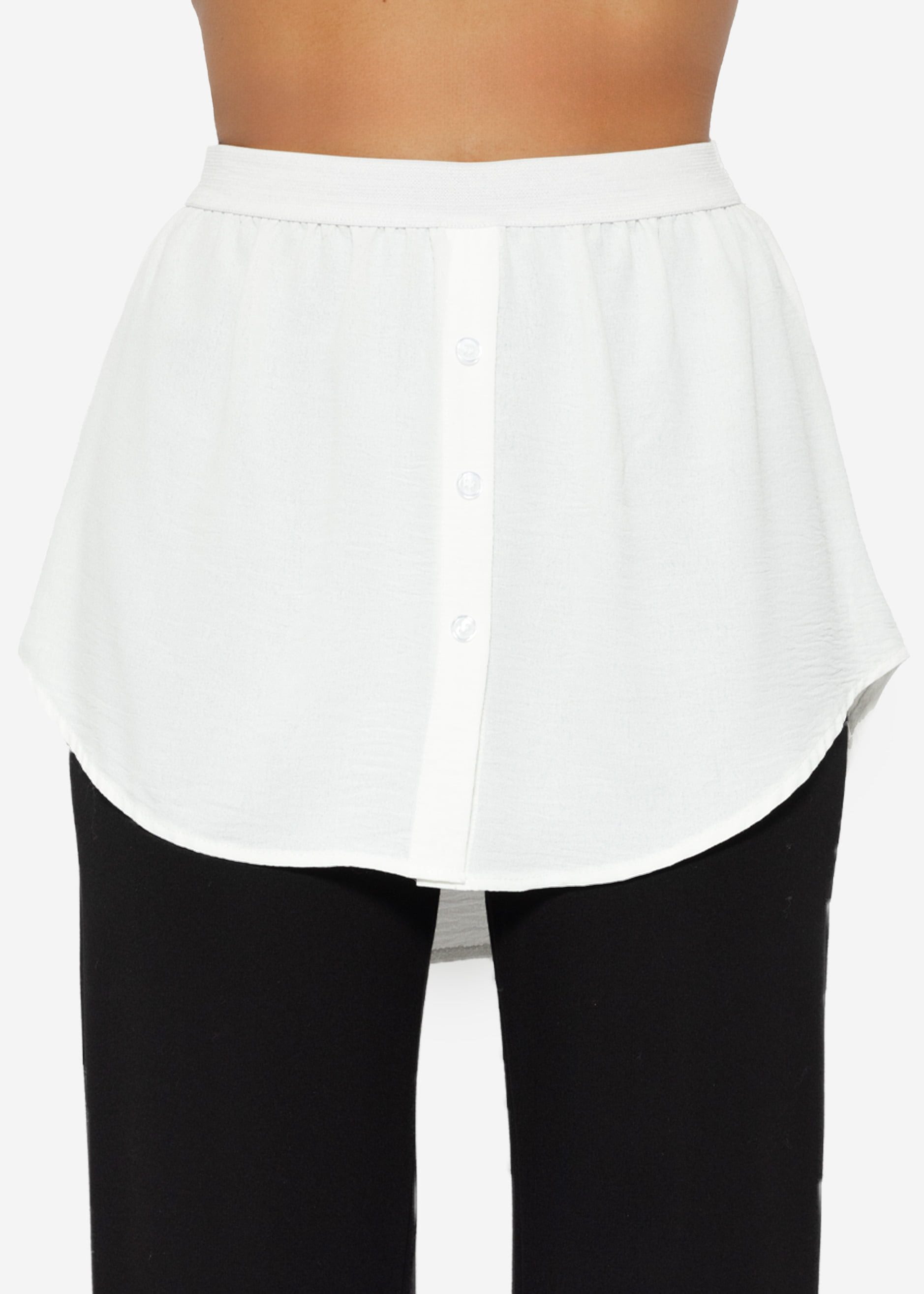 DESIGN: Die Vorderseite ähnelt der unteren Hälfte einer klassischen Bluse mit Knöpfen und abgerundeten Säumen.