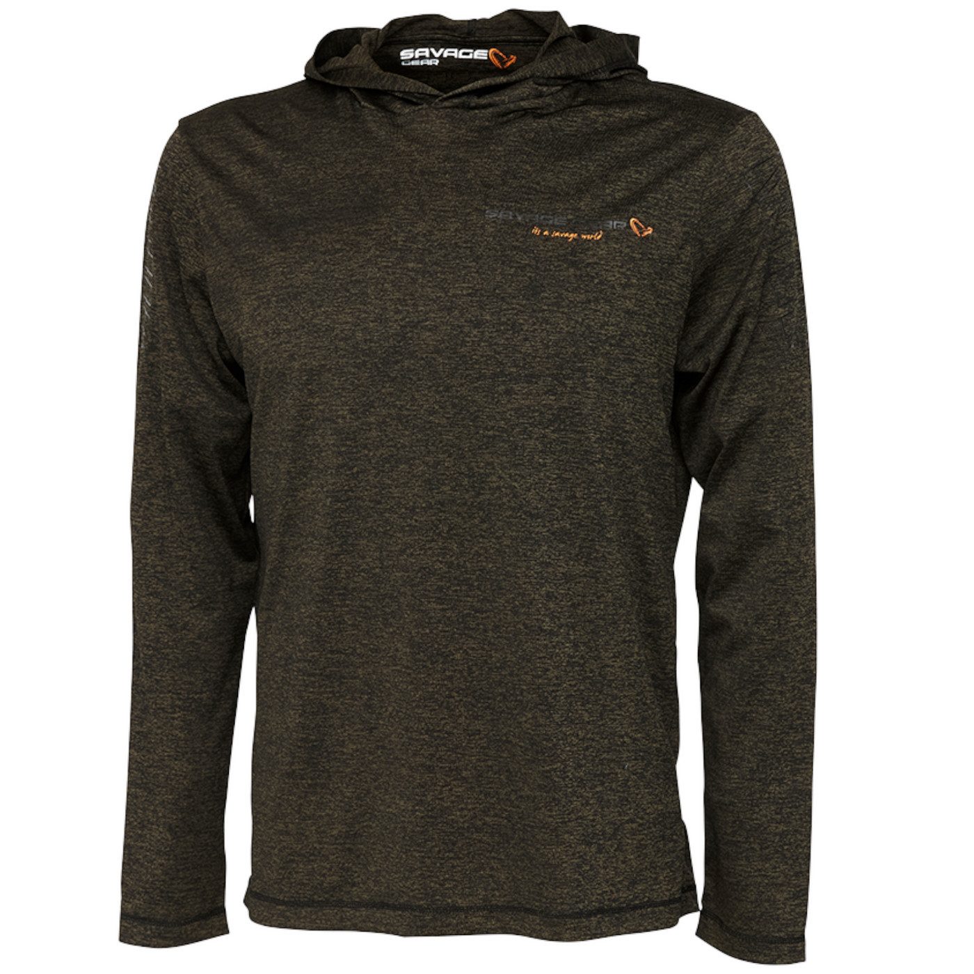 Savage Gear Fighter Stretch Hoodie Burnt Olive Melange - Pullover - Das Kleidungsstück von Savage Gear ist ein guter Kapuzenpullover, der aus einem bequemen, dehnbaren und atmungsaktiven Material besteht. Neben der Angelei am Wasser kann der Pulli auch gut in der Freizeit getragen werden. Der Kapuzenpulli ist ein treuer Begleiter beim Spinnangeln auf Raubfische wie zum Beispiel Zander, Barsche, Hechte und weitere Fischarten.