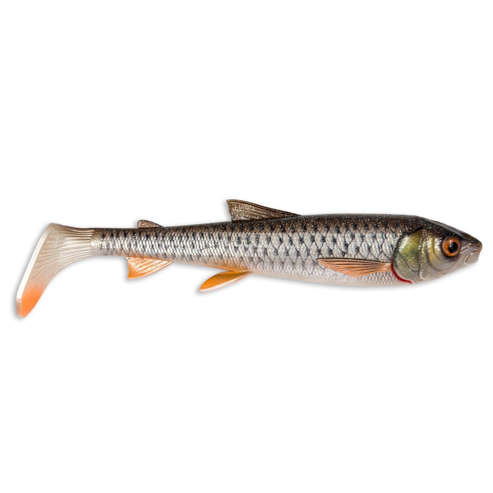 Savage Gear 3d Whitefish Shad - Gummifische - Die Gummiköder aus dem Hause Savage Gear sind gute Paddelschwanzköder, die auf einem Scan eines echtes Weißfisches basieren. Sie zeichnen sich durch viele Details und ein tolles Laufverhalten aus. Der wuchtige Kopf und der vordere Körper verdrängen viel Wasser und verleihen den Köder eine große Stabilität bei flacher Führung. Die beweglichen und sehr realistischen Flossen ergänzen den großen Paddelschwanz, der mit einer Glasrassel versehen ist, um die Fische zusätzlich zu reizen.